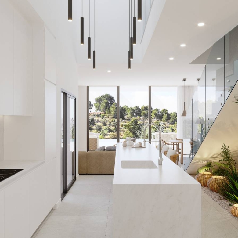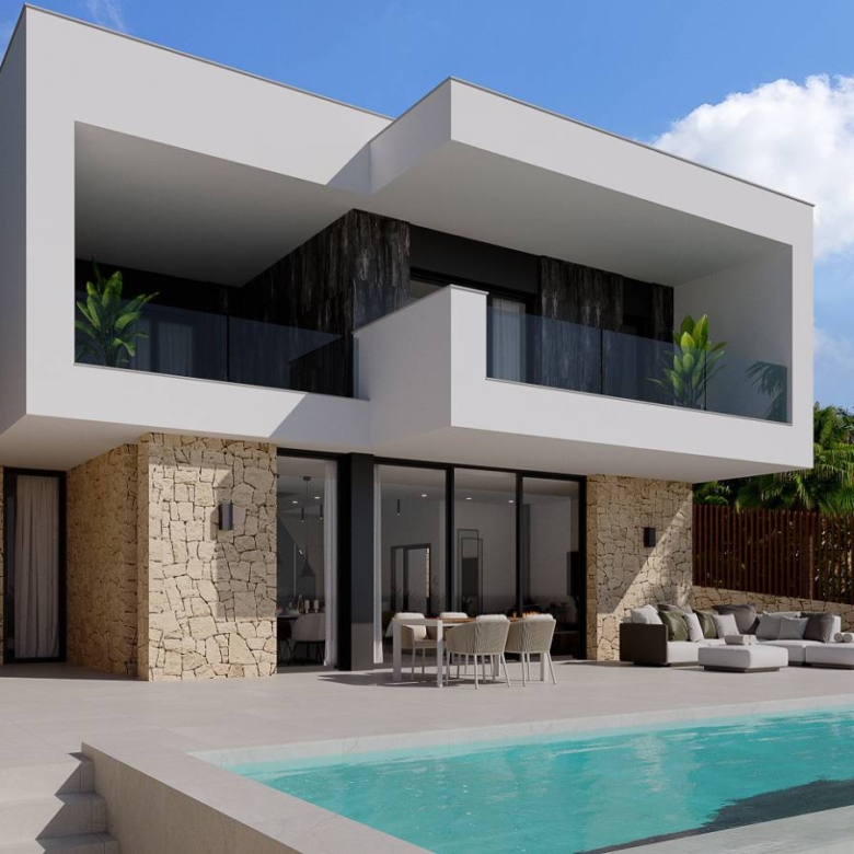 Villas for sale in Finestrat, Costa Blanca Various models of different typologies, signature homes, private pools, local stone, exceptional diffusion of natural light, optimal energy efficiency, perfect integration of interior and exterior space, are the characteristics of the innovative architecture, where nature and comfort meet. merge with the most innovative design. The residential incorporates energy efficient facilities such as aerothermal systems or solar energy, in order to achieve high energy performance throughout the year. The first phase of this residential consists of 3 models of independent villas on one floor: * Villas Colibri: 3 Bedrooms + 2 Bathrooms. 107.50 m2 built. Plots of 325.00 m2.* Villas Alcotan: 4 Bedrooms + 3 Bathrooms. 120.00 m2 built. Plots of 400.00 m2.* Villas Azor: 2-storey houses next to the banks of the Alfarelles river, 178.41 m2 built and on 500 m2 plots. This exclusive residential offers premium security and privacy systems in each property, based on 4 main points: Existence of 1 entrance and 1 exit, both monitored by security cameras. Perimeter limited only by the Alfarelles de la Tapiada river, the surrounding pine forest and its own internal streets; which means that the access for the owners is totally private and all the properties belong to the residential complex. All our houses are designed and built with pre-installation for security cameras and pre-installation of private alarm system, the minimum building density has been a constant throughout the project, with the aim that each house coexists with its environment and integrates naturally in the privileged setting that surrounds it. A place magically located between the mountains and the sea and a true paradise for lovers of tranquility and outdoor sports. The residential also stands out for its proximity to the La Marina shopping center and the Terra Mitica theme park. Property ID: GH-307543 Price: €795,000 Property Size: 192 m2 Land Area: 500 m2 Bedrooms: 3 Bathrooms: 4 Property Type: Villa Property Status: For Sale