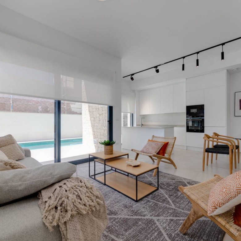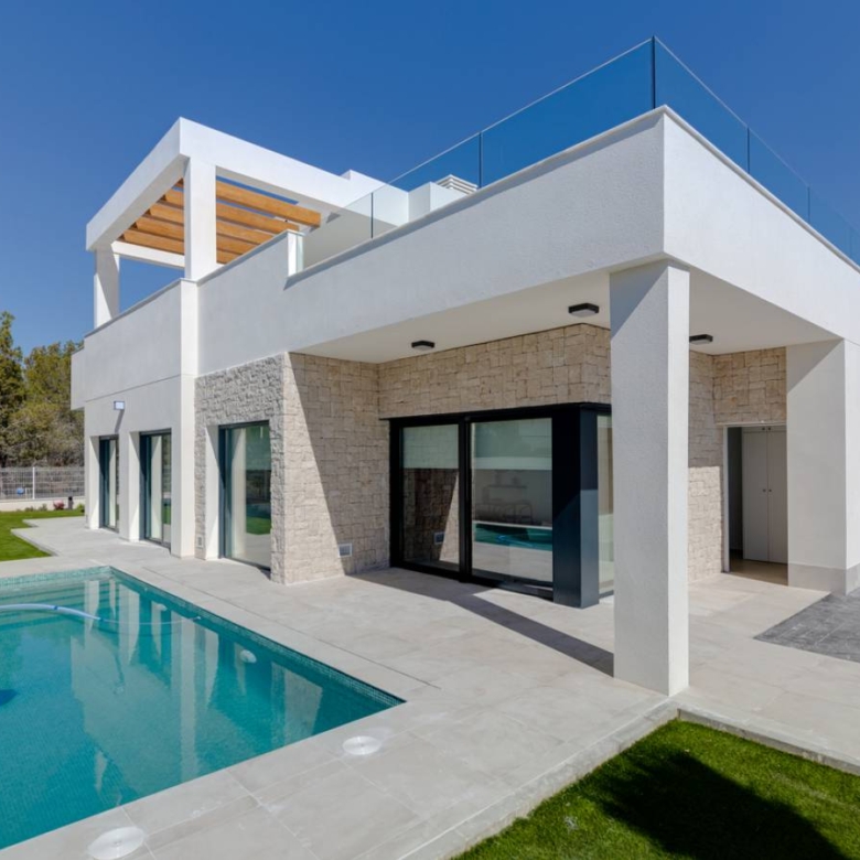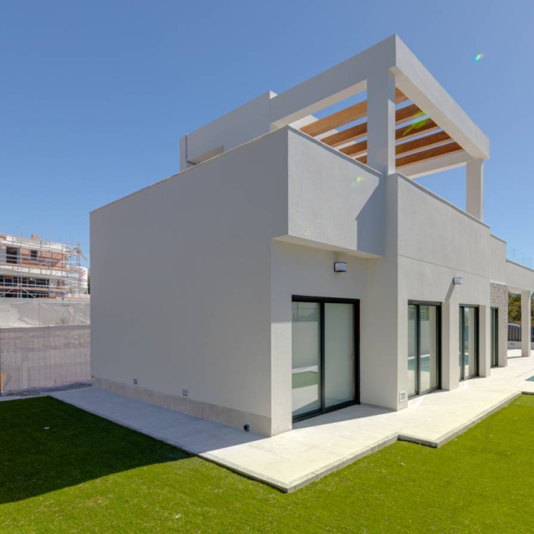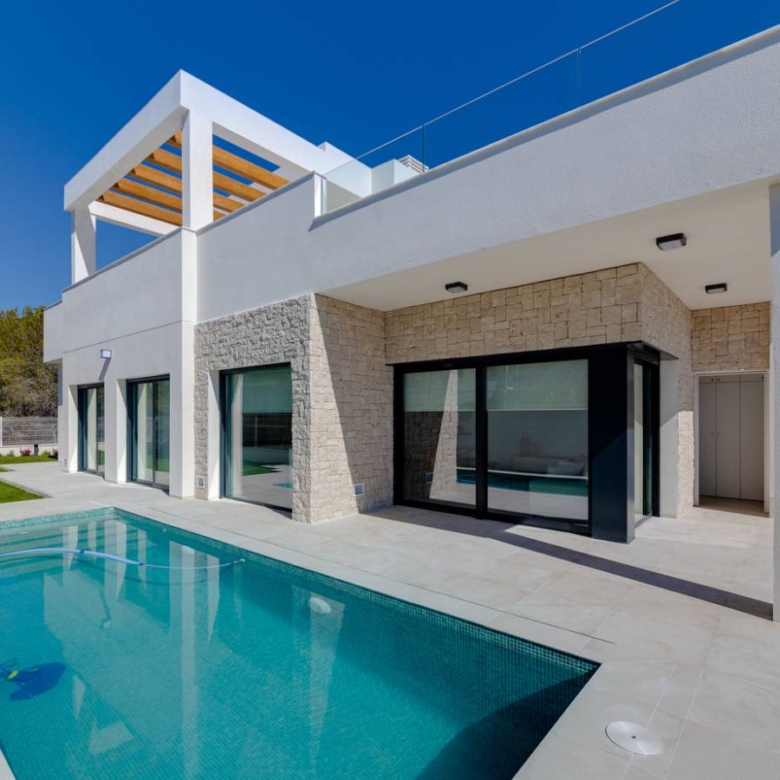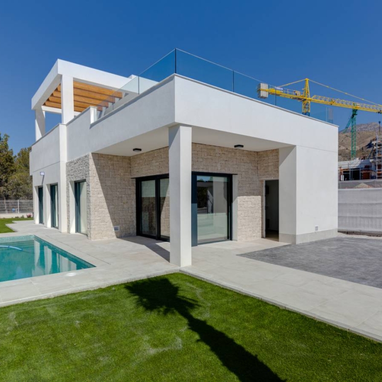 Villas for sale in Sierra Cortina, Finestrat, Costa Blanca The complex of 12 modern homes surrounded by green areas and golf courses, which will cover a total area of about 3 hectares, and which will become one of the best residential areas on the Levantine coast. Each house has 3 bedrooms and 2 bathrooms with a private pool and garden. Unbeatable location just 5 minutes from the Mediterranean Sea and surrounded by pine forests, golf courses, leisure centers and theme parks such as Terra Mitica or Terra Natura. Finestrat in a small town of 6,000 inhabitants located a few minutes from Benidorm. Its privileged location has one of the best views of the entire Alicante coast, on two waters between the majestic Puig Campana and the wonderful Benidorm Skyline, something that residents know very well and that gives them an incomparable sensation. A town full of charm, its streets soaked in colour, with its typical facades painted in different colors and with an architecture that delights the most observant retinas. The sea breeze in the summer means that the temperature is not excessively high and the winters are relatively mild due to its particular orography. CHARACTERISTICS * Built: 147m2* Plot: 420m2* Pool: Yes* Kitchens: Open* Condition: New* Built-in wardrobes: 4* South orientation* Private pool* Intercom* Reinforced door* Unfurnished* Solarium* Terrace* Air-conditioning* Heating* Garden* Laundry* Distance to the beach: 3.5 km.* Distance to the airport: 55 km.* Distance to leisure: 1 km.* Distance to the golf course: 3 km. Property ID: GH-307595 Price: €535,000 Property Size: 103 m2 Land Area: 420 m2 Bedrooms: 3 Bathrooms: 2 Property Type: Villa Property Status: For Sale