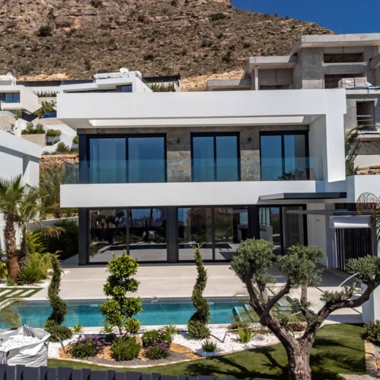 Luxury villa in Sierra Cortina, Finestrat, Costa Blanca Living room + Kitchen- 85 m2Bedrooms- 4Bathrooms- 4Plot- 704 m2Built- 635.42 m2Pool 10 X 4 mGarden- completely finished with automatic irrigationElevator (Otis)Radiating floorHome automation (a / c control, underfloor heating, exterior and interior lighting, blinds)Electric shuttersSiemens exterior and interior lightsHigh ceilings up to 3.20 m highSeaviewA guest apartmentBasement with English patioAerothermal heatingPre-installation of solar panels throughout the fabricIroko entrance gateFully Assembled Kitchen with IslandBuilt-in wardrobesPorcelain polished floorWall with natural stone carved by hand4 car garage with automatic doorsStainless steel and glass railingsSolar control glazingWindows with thermal bridgeFacade finished with natural stoneMarble staircaseInterior doors height 2.40 m Property ID: GH-3046878-D Price: €2,100,000 Property Size: 562 m2 Land Area: 704 m2 Bedrooms: 4 Bathrooms: 4 Property Type: Villa Property Status: For Sale