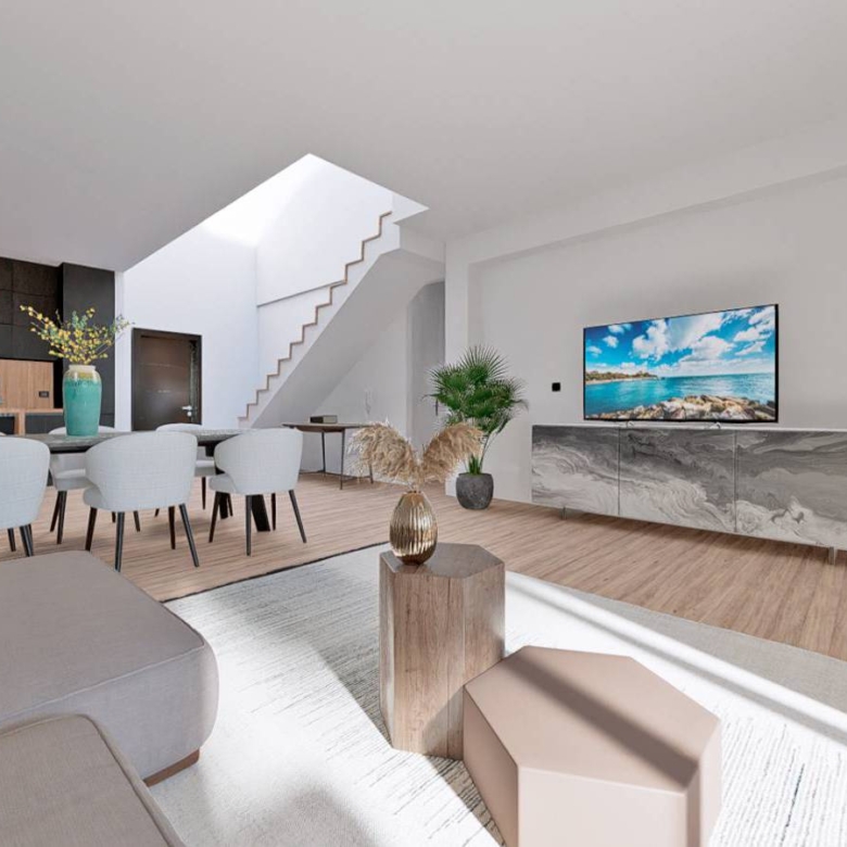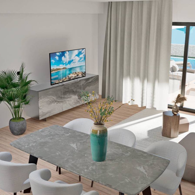 Residential complex in Finestrat Hills, Costa Blanca 16 exclusive properties with private pool, you can choose between townhouses, semi-townhouses and exclusive bungalows with 2 or 3 bedrooms on the ground floor or upstairs. All the houses on the top floor have a magnificent solarium. The residential is located near numerous beaches and coves, with a perfect temperature for swimming almost all year round. You will be able to enjoy a perfect outdoor life with your family and friends with multiple leisure options nearby. The urbanization is located in Finestrat, an exclusive area with views of the Mediterranean that you can enjoy from your private pool or magnificent solarium. Transport, services, sea and nature and shopping and leisure areas just a few minutes from the residential. Property ID: GH-307392 Price: €349,900 Property Size: 131 m2 Land Area: 131 m2 Bedrooms: 3 Bathrooms: 2 Property Type: Apartment Property Status: For Sale