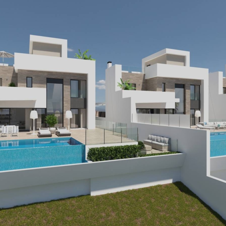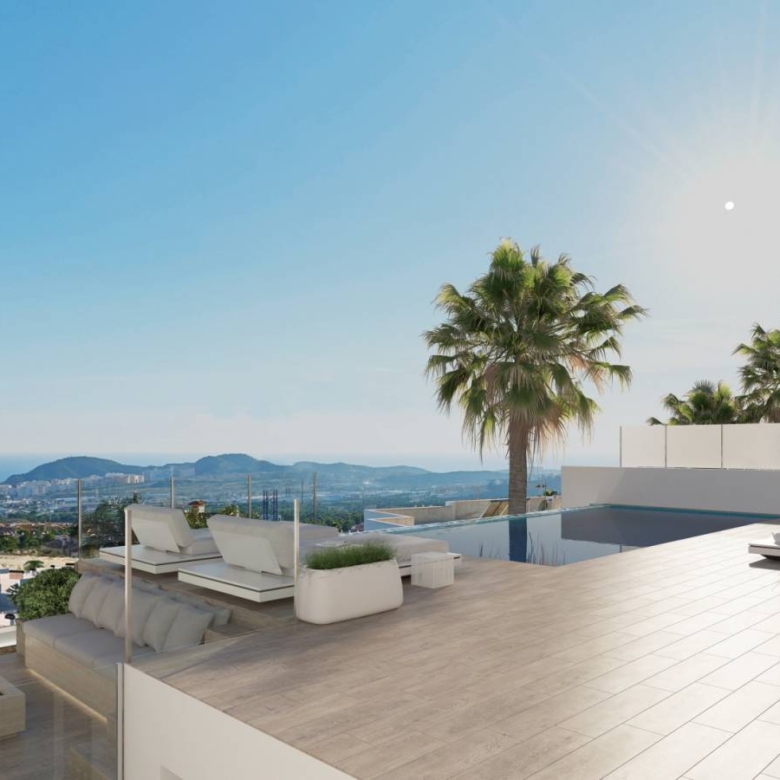 Luxury villa in Finestrat Hills, Costa Blanca, Alicante Each villa is built on 2 floors, 4 bedrooms and 5 bathrooms, private parking. They also have a solarium and an interior garden with a basement. Each villa has its own elevator. The solarium offers a wide and unforgettable view of Benidorm and the sea. These villas are unique for their design and amenities: a large living room, large en-suite bedrooms on the first floor, a solarium to relax and enjoy the sunsets, a contemporary infinity pool and a large terrace for vacations and rest. Property ID: GH-289318 Price: €1,350,000 Property Size: 425 m2 Land Area: 430 m2 Bedrooms: 4 Bathrooms: 5 Property Type: Villa Property Status: For Sale