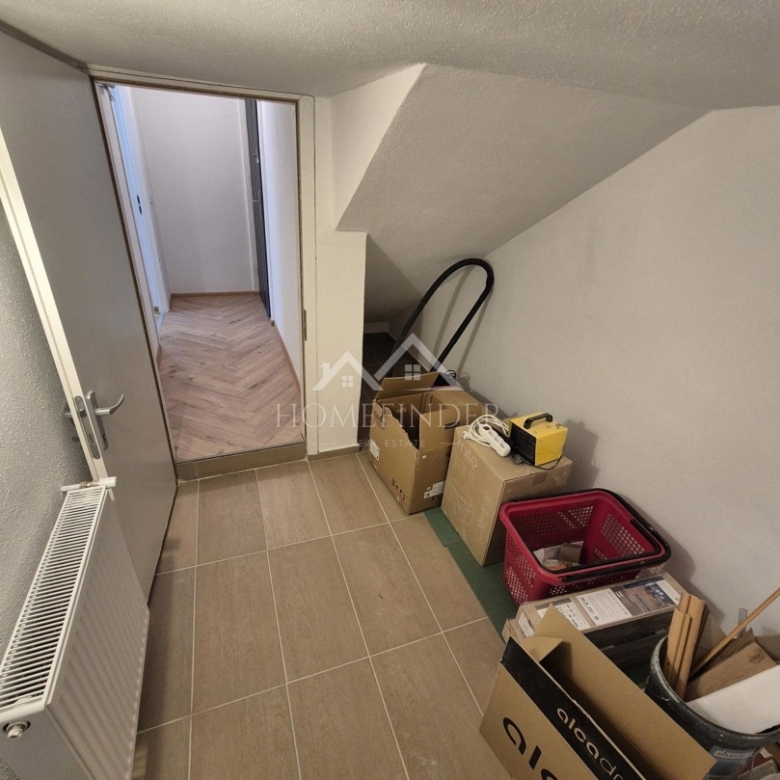 Stan površine 67 m² potpuno je renoviran 2025. godine, a moderni dizajn usklađen je s funkcionalnošću. Prostrani dnevni boravak s kuhinjom čini središnji prostor, dok dvije spavaće sobe osiguravaju dovoljno prostora za odmor. Elegantna kupaonica i praktična ostava dodatno podižu udobnost ovog doma.
