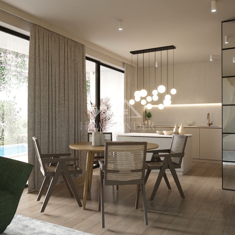 Stan je dio moderne novogradnje, koja se sastoji od dvije zgrade, svaka s četiri stana, projektirane s naglaskom na sofisticiran dizajn, visokokvalitetne materijale i besprijekornu funkcionalnost.