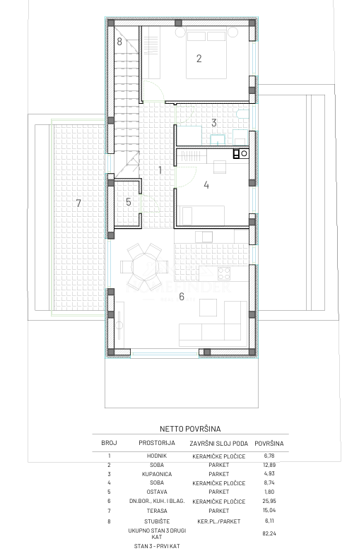 Ova nova moderna vila nudi vam trosoban stan s vrhunskom opremom, dizajnirana kako bi zadovoljila najviše standarde kvalitete i udobnosti. S pažljivo biranim materijalima i sofisticiranim detaljima, ovaj stan nudi besprijekornu funkcionalnost i estetsku privlačnost.