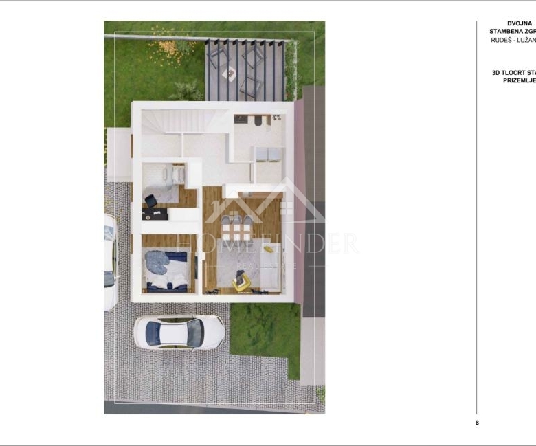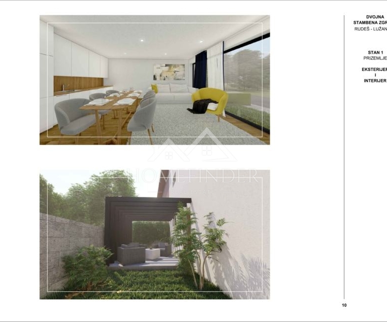 Stan se nalazi na izrazito traženoj lokaciji. Udaljenost od OŠ Rudeš (300 m), dječji vrtić (300m), Kaufland (350m), ljekarna (50m), jezero Jarun (1,5 km) , Zagrebačka avenija (250m). Stan ima 2 spavaće sobe, openspace prostor (dnevna, kuhinja, blagovaona, hodnik), izbu (u kojoj je priključak za perilicu i gdje je smještena dizalica topline), kupaonu, spremište ispod stubišta. Uz stan se također dobiva : privatni dio dvorišta zaklonjen od pogleda, vanjsku natkritu terasu, vanjsko spremište i 1 parkirno mjesto.