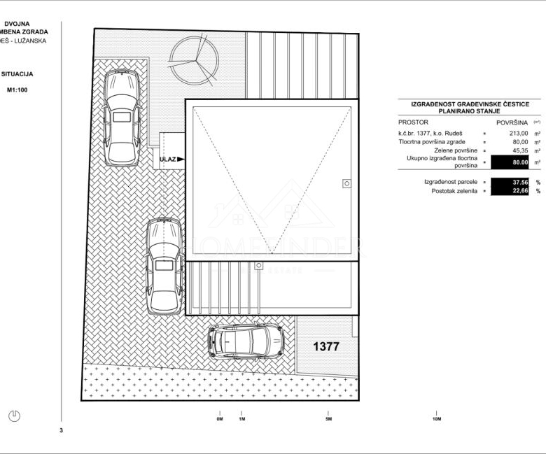 – natkrivena terasa u vrtu : 16,0 m2 x 0,5 = 8,0 m2 (neto)