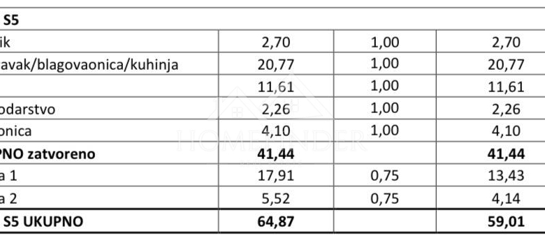 Savršen raspored: Stan se sastoji od hodnika (2,70 m²), spavaće sobe (11,61 m²), kupaonice (4,10 m²), dnevnog boravka s kuhinjom i blagovaonicom u open-space konceptu (20,77 m²) te dodatnog prostora za gospodarsku prostoriju (2,26 m²).