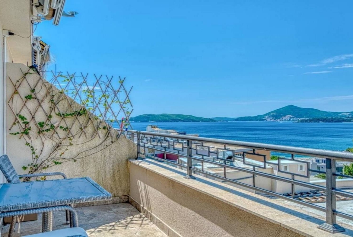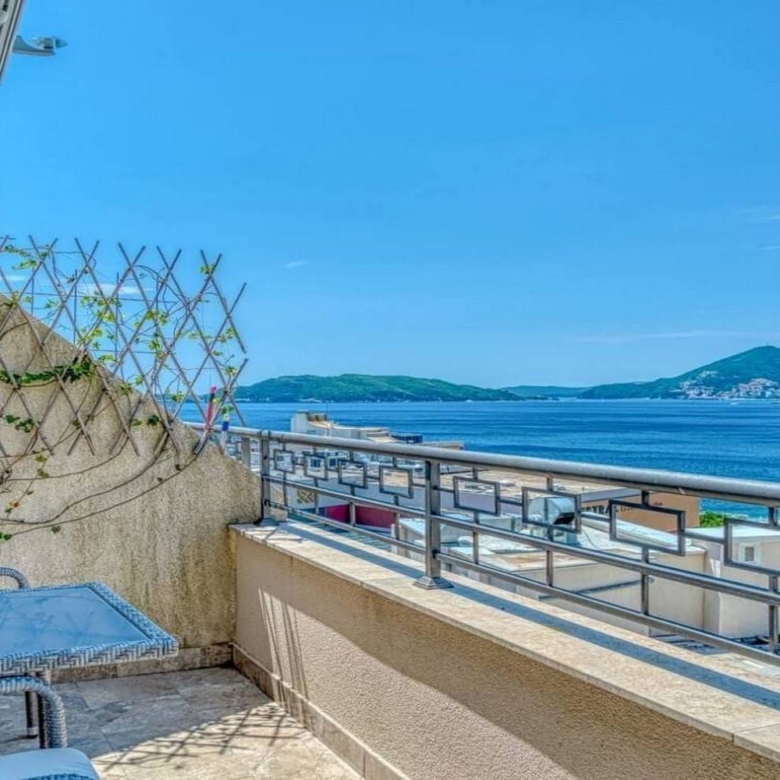 This four-bedroom apartment for sale is located in Pržno, in Budva municipality. Pržno is a small fishing place that joins together the spirit of the old with the modern glamour. The atmosphere of an authentic fishing place with the traditional way of fishing, an air spa – Miločer park full of pine, a 20-minute walk through a cedar forest to the Sveti Stefan, and famous fish restaurants, are just a few advantages of this place.The 112m² apartment is on the 4th floor of a building and is on two levels. On the first level (74m²) there is a large living room, a kitchen, two bedrooms, a bathroom, and a hallway. On the second level, there are two bedrooms and a bathroom. The apartment is fully furnished, with all the necessary appliances. Windows are wood-aluminum of Italian brand Profilati, with a mechanism for electronically raising blinds. There is underfloor heating in the bathrooms and the “Vileroy&Bosch” sanitation. The bathrooms and the terrace are covered with natural stone (marble). The apartment is airconditioned, with LG multi-split system with 5 internal units.There is a parking place in the garage, on the ground floor of the building, and an elevator from the garage to the apartment.This building has an excellent position and is centrally located in the Pržno, less than five minutes walk from the beach. Well positioned, this apartment is only 31km away from Tivat international airport and 59km from the airport in Podgorica, the capital of Montenegro.We believe that this property is perfect for your family and friends’ gatherings, during the whole year. If you are interested in a sea view apartment, feel free to contact us for more information.