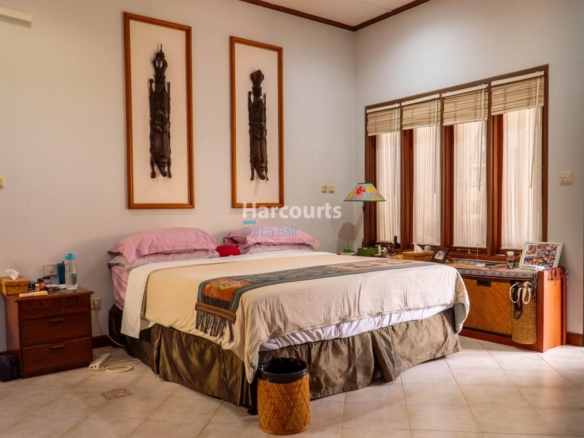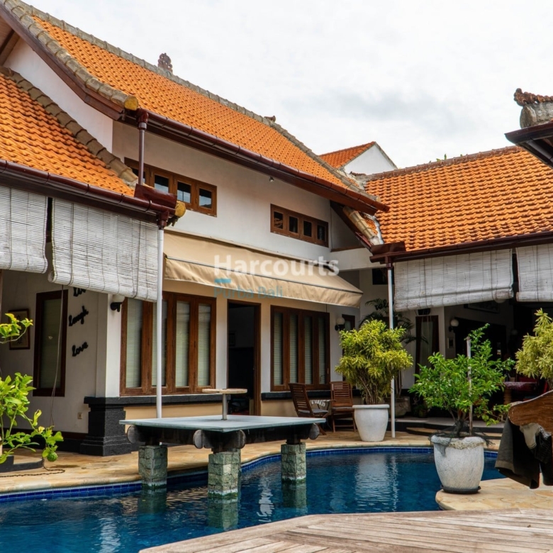 Opportunities like this don’t come around often in beachside Sanur. Set on 612 sqm of freehold land, this spacious villa property sits just a 10-minute walk from the shoreline and moments from the bustling Danau Tamblingan strip—home to Sanur’s best cafes, restaurants, and boutique shops. The nearest supermarket is five minutes away, Bali Mandara Hospital is a quick 10-minute drive, and everything else you’d expect from a well-established neighborhood—schools, gyms, beach clubs—is close at hand.The residence unfolds across approximately 435 sqm of build area, with four bedrooms, six bathrooms, and a flexible studio space. Designed for family living, the layout includes both open and enclosed areas, a functional kitchen and dining setup, an office, and generous service zones including two staff rooms, a laundry area, and a garage with extra parking onsite.Outdoors, a 9 x 3.5-meter swimming pool sits beside a small garden and shaded seating area. The home is fully equipped with two power lines, deep well, internet, multiple AC units, and water heaters—offering the essentials already in place for immediate use or future plans.Very few properties of this scale remain available in beachside Sanur, especially with a Hak Milik (freehold) title. The combination of land size, location, and accessibility makes this a standout listing, whether you’re looking for a private residence or a longer-term asset in one of Bali’s most sought-after coastal enclaves—especially at an asking price of iDR 15 billion.Nearby: CORK Bistro & Wine Bar 250 m, Paradise Bali Gym 450 m, Karang Sanur Beach 600 m, icon Bali Mall 1 km, Massimo italian Restaurant 1.1 km, Liga Tennis Sanur 1.2 km, Sanur Padel Club 1.5 km, Grand Lucky Supermarket 1.8 km, Bali international Hospital 2 km