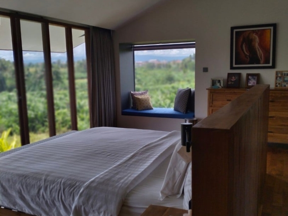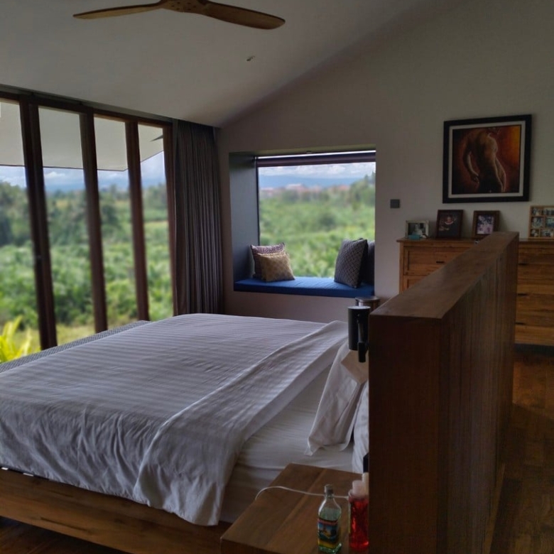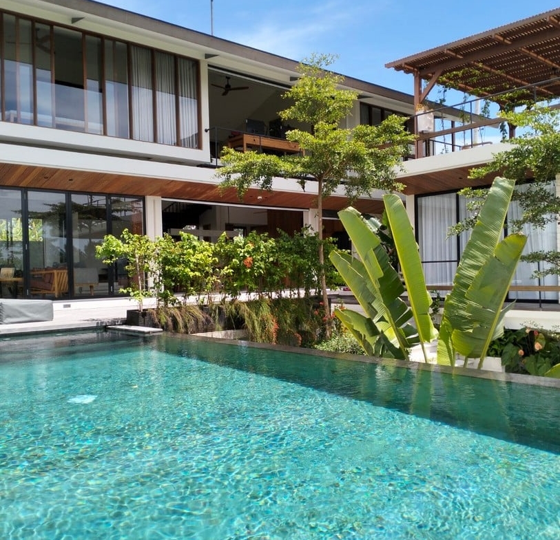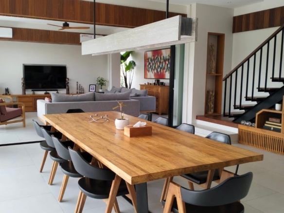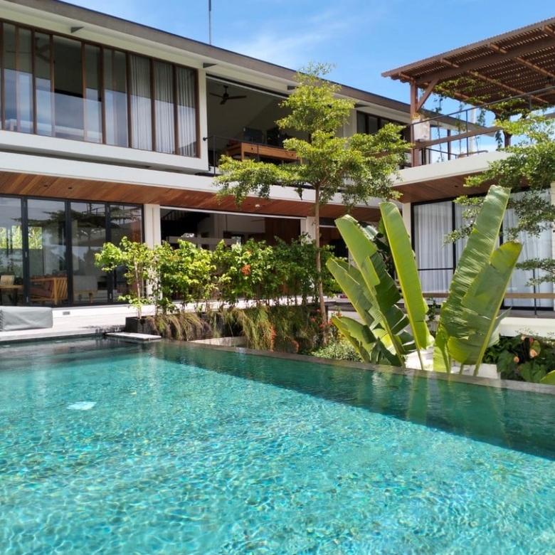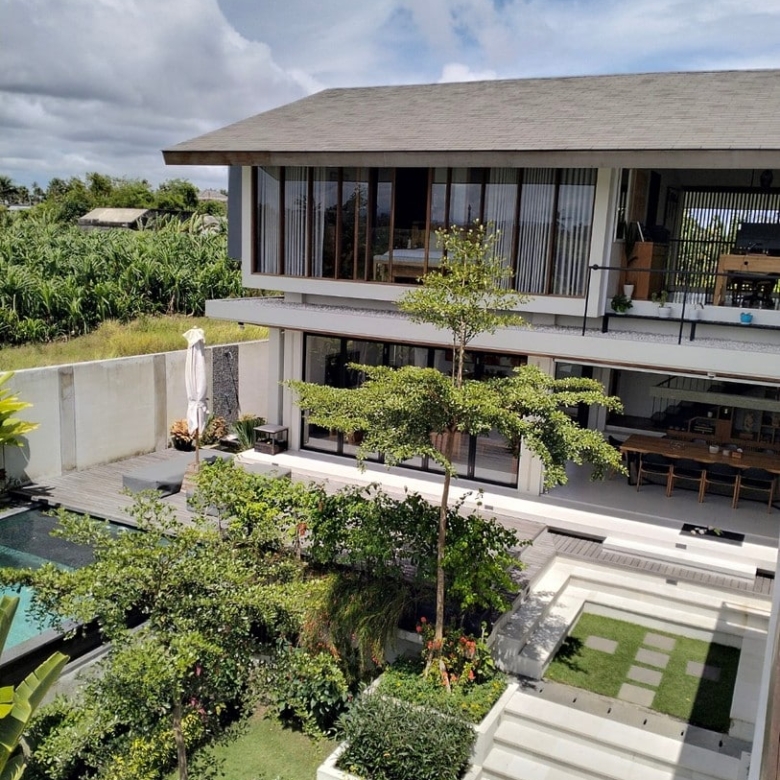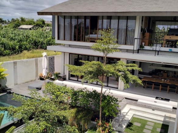 With beautiful rice field, mountain, and sunset views, this FREEHOLD villa in authentic Tumbak Bayuh will make a lovely family home for those who appreciate tranquillity. Built in 2022, this modern tropical style villa sits on an expansive 800 sqm of land, including an additional 200 sqm leasehold garden extending until 2057.The multi-level, south-facing property features 4 spacious bedrooms, all with adjoining bathrooms. The open-plan living space opens up with large glass doors to views of the swimming pool and rice fields beyond. The pool itself is 9 metres long with a large wooden sundeck. The villa has a fully equipped modern kitchen, guest powder room, staff quarters, and parking for 1 car. An additional entertainment space can be found on the rooftop—the ideal spot for cocktails while watching the sun go down. The villa comes fully furnished with well-appointed furniture and fittings.Nearby: Baked Pererenan 1 km, Pepito Supermarket 1.1 km, Jungle Padel 1.4 km, Deus Ex Machina 3.3 km, Pererenan Beach 3.8 km, La Brisa 3.9 km, Montessori School 5 km
