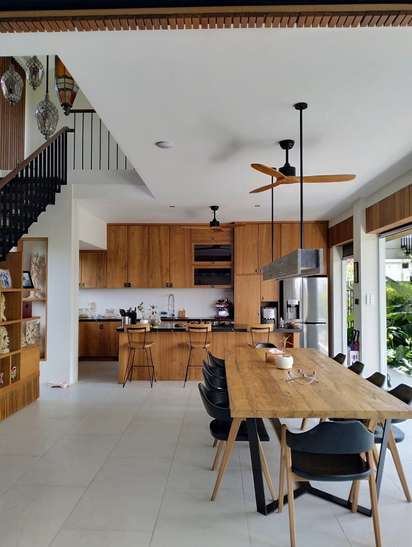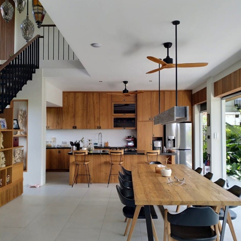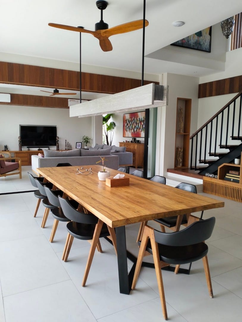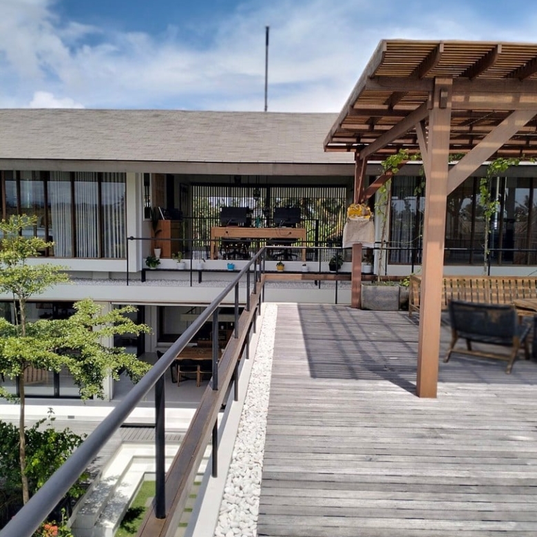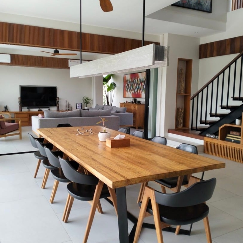 With beautiful rice field, mountain, and sunset views, this FREEHOLD villa in authentic Tumbak Bayuh will make a lovely family home for those who appreciate tranquillity. Built in 2022, this modern tropical style villa sits on an expansive 800 sqm of land, including an additional 200 sqm leasehold garden extending until 2057.The multi-level, south-facing property features 4 spacious bedrooms, all with adjoining bathrooms. The open-plan living space opens up with large glass doors to views of the swimming pool and rice fields beyond. The pool itself is 9 metres long with a large wooden sundeck. The villa has a fully equipped modern kitchen, guest powder room, staff quarters, and parking for 1 car. An additional entertainment space can be found on the rooftop—the ideal spot for cocktails while watching the sun go down. The villa comes fully furnished with well-appointed furniture and fittings.Nearby: Baked Pererenan 1 km, Pepito Supermarket 1.1 km, Jungle Padel 1.4 km, Deus Ex Machina 3.3 km, Pererenan Beach 3.8 km, La Brisa 3.9 km, Montessori School 5 km