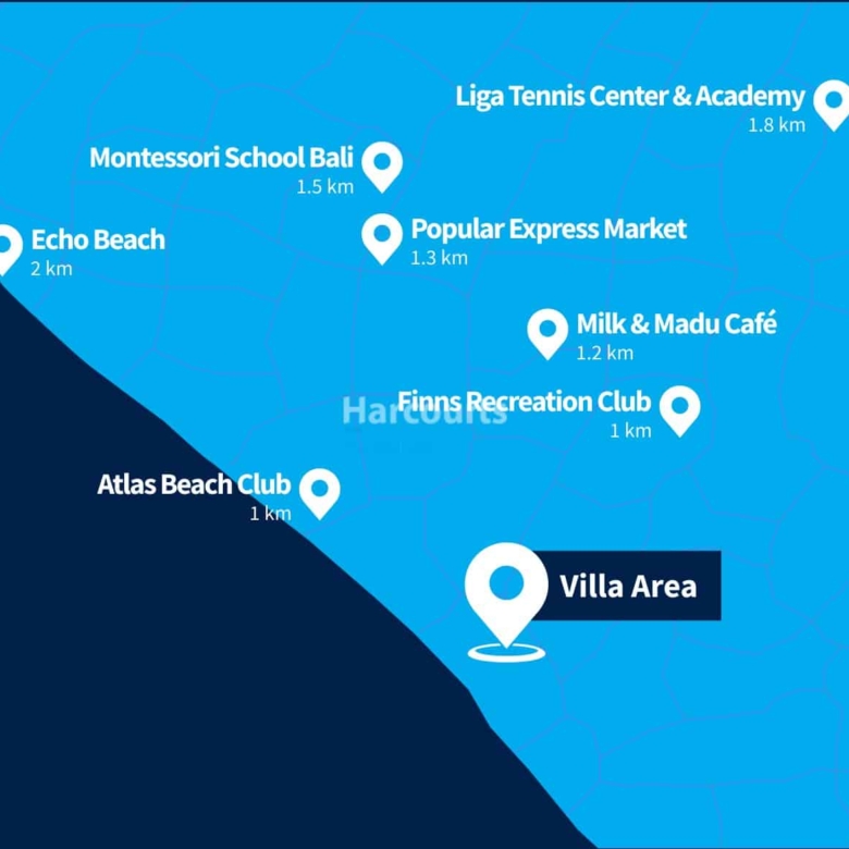 Newly released and already 13 villas sold out of only 21 units, this new development is the pinnacle of Berawa beachfront living with sophisticated villas (Phase 1) and ocean-view apartments (Phase 2) along with resort style facilities that includes a large communal swimming pool, restaurant and gym. Escape to a world where tropical bliss seamlessly intertwines with contemporary comfort and luxury, creating an idyllic retreat that caters to both the soul and the senses. Every decision, from building to operations is carried out to the highest standards. The entire resort and residences will be completed in October 2025.Located in a very quiet pocket of Berawa – a sought after Canggu neighbourhood famous for its beach and vibrant culture. The resort is walking distance to shops, high end restaurants, trendy cafes and just a few minutes drive away from iconic beachclubs, medical centres and sports facilities. Just up the road is Finns Recreation Club including Bounce Trampoline Centre, Strike Ten Pin Blowing, and Cubby House Kids Club.Choice of FREEHOLD unit types:7 units, 1-Bedroom Villas (Building Size 105 sqm) Sold Out10 units, 2-Bedroom Villas (Building Size 155 sqm)4 units, 3 Bedroom Villas with Balcony & Jacuzzi (Building Size 230 sqm) Sold OutOpt for a profitable comprehensive management program for investors with excellent projected ROi based on revenue sharing with no limit to the number of owner-stay days under the umbrella of CAVANA, a prominent property developer from Jakarta specializing in premium residences with a focus on delivering quality and enduring designs while prioritizing the creation of comfortable living spaces. They have 3 prestigious developments in Bali. They have also expanded its operations into the hospitality sector managing rental properties for their buyers and clients. Or you may also use it as your own private residence paying only very reasonable monthly maintenance fee.Nearby: Lv8 Resort Hotel 350 m, Cafe del Mar 300 m, Canggu Plaza 650 m, Atlas Beach Club 1 km, Finns Recreation Club 1 km, Milk & Madu Cafe 1.2 km, Popular Supermarket 1.3 km, Montessori School Bali 1.5 km, Liga Tennis Center & Academy 1.8 km, and Echo Beach 2 km.Villa 20, Price: iDR 7,569,274,815