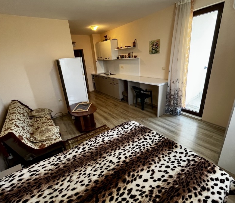 Fully furnished studio, 35 sq.m., in Apollon apartments, Ravda Apollon apartments have fantastic location – only 3 min walking distance to the sandy beach (popular Aurelia beach). The complexes are situated between Ravda and Nessebar, within short walking distance to various shops, restaurants and bars, bus stop, etc. attractions and amenities. The Aqua Park is 300 m away. There are 7 swimming-pools on dispose of the owners and their guests, 2 restaurants, SPA area, gym, sauna, security, parking and 3 children’s playgrounds. Annual maintenance fee – 10 EUR/sq.m. The apartment is situated on the first floor and has a total living area of 35 sq.m., comprising of: – hallway; – open -plan kitchen with bedroom area; – Bathroom/WC; – balcony with views to the surroundings. The price includes all furniture as shown on the photos. “APOLLON” is a closed complex surrounded by picturesquely designed spaces: public gardens with a variety of decorative vegetation, a childrens playground, a swimming pool for children and adults, an area for recreation and walking. Located between Ravda and Nessebar, just 200 meters from the beach and 300 meters from the Paradise Water Park. The Apollon complex consists of 10 five-story buildings, each of which has its own swimming pool with a childrens section and an extensive beach area. The location provides guests with two restaurants, a cafe, a minimarket, a small spa center, tennis courts, a childrens playground, and free parking. ✔ 7 swimming pools for adults and children ✔2 restaurants with full menus, dishes and drinks ✔3 playgrounds ✔SPA and sports center with fitness area: sauna, steam bath, ice room, jacuzzi, contrast shower, anti-cellulite capsule, massages, etc. ✔24-hour security and video surveillance of common areas.