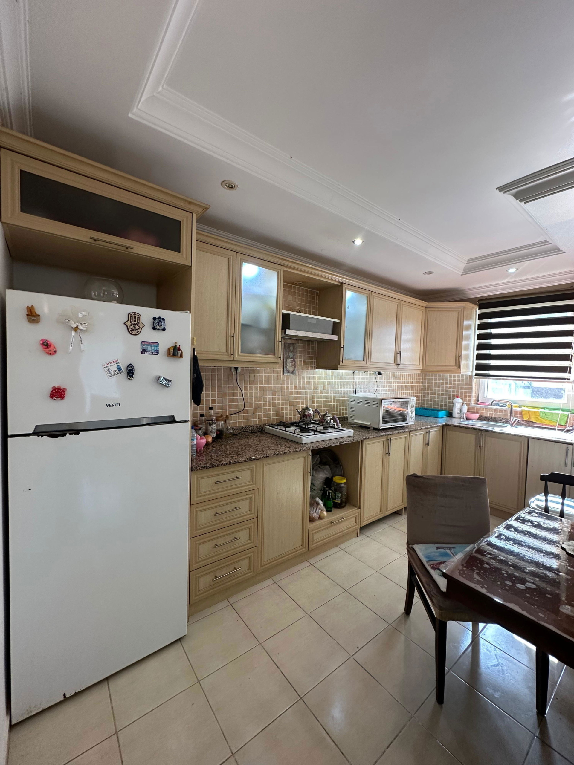 This fully furnished 4-room penthouse in Helios Residence, Cikcilli, offers generous space, excellent outdoor areas, and a wide range of on-site facilities. With 150 square meters of living space, two private terraces, and access to an indoor pool, green areas, and a tennis court, this residence presents a comfortable and practical home within walking distance (800 meters) of the beach.