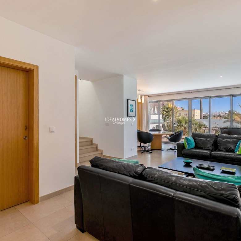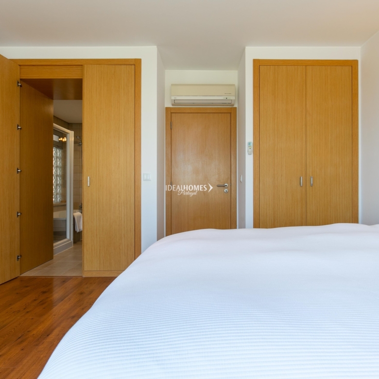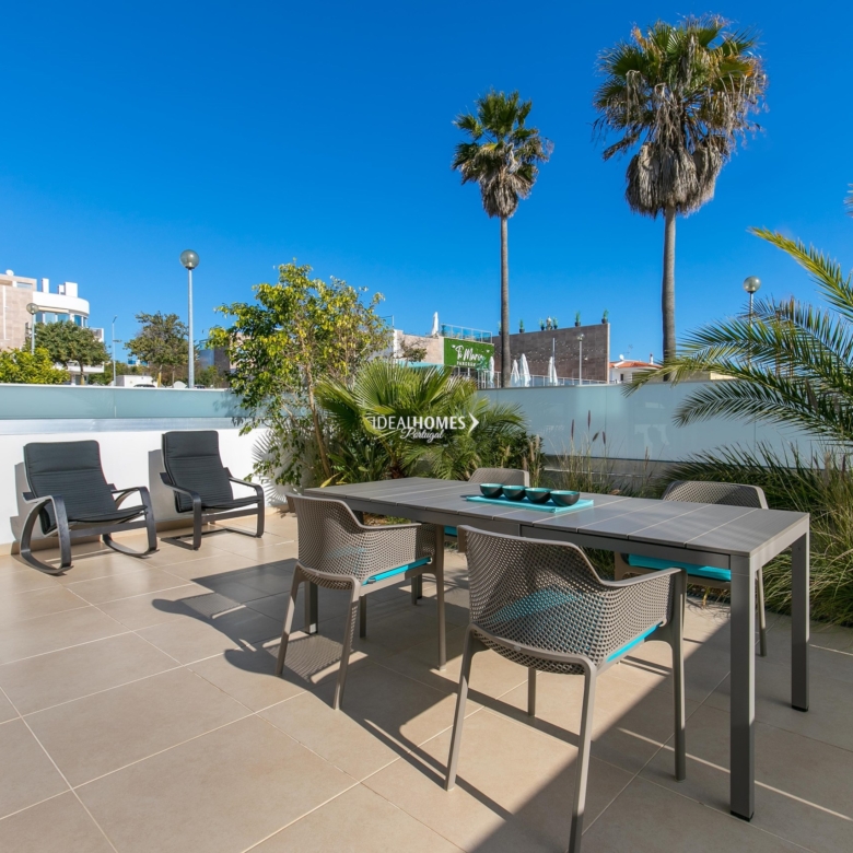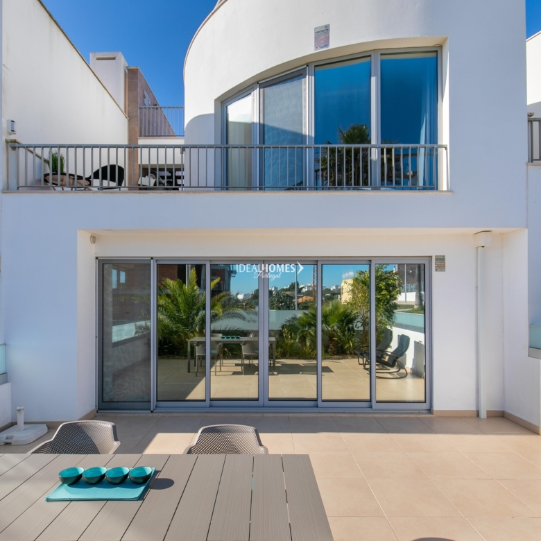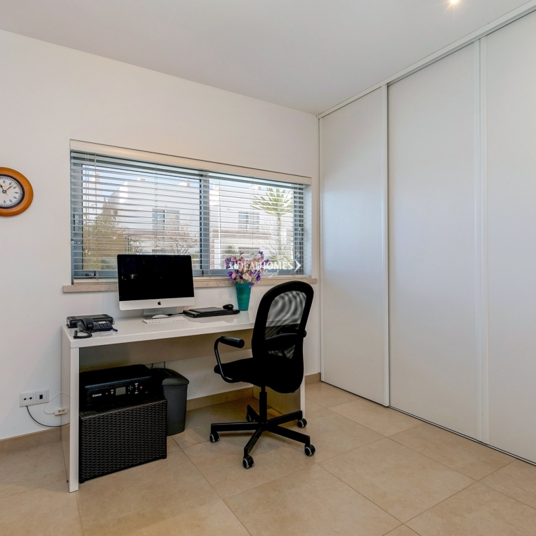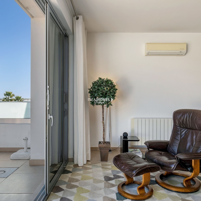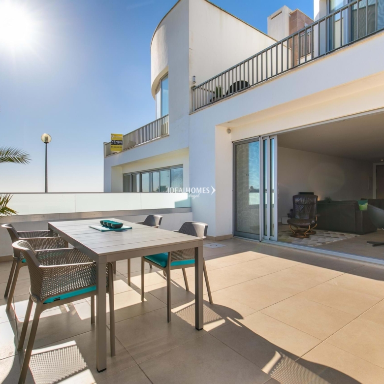 Featuring stunning sea views, this three bedroom townhouse is located in a modern development in Fuseta, within walking distance to the beach. On the ground floor, an open-plan living room leads round to the dining area and fully fitted kitchen. There are large sliding glass doors heading out from this space on to a terrace with amazing sea views, where there is a second dining area and a small well maintained garden. In addition to this, one of the three large bedrooms is also on the level along with a bathroom. This bedroom is currently being used as an office. Upstairs, there are two bedrooms: the master bedroom has an en-suite bathroom and panoramic glass windows by the bed, giving the privilege of waking up to beautiful sea views. The en-suite bathroom has the benefit of being equipped with a bathtub separate from the walk-in shower. The second bedroom also has an en-suite bathroom and a private balcony facing a different angle of the Ria Formosa and Armona’s island. The stairs on this balcony lead up to a large roof terrace with a private Jacuzzi, a pergola and extra lounge spaces to comfortably enjoy the impressive 180-degree views of Fuseta and Armona’s beaches. Next door, there’s a communal swimming pool which is accessible by paying a small daily or monthly fee, and it comes with an amazing local restaurant with a rooftop that offers meals, tapas, snacks and drinks, all accompanied by incredible sea views. Comments from the Owner: ’Living here has been the highlight of our lives, with Ria Formosa being the backdrop to our daily lives. Waking up to natural, stunning and ever-changing views from sunrise to sunset, you can watch it all: the flamingos, the sandbanks, the colourful paragliding, etc. In addition, we have been so grateful to be able to access fresh produce daily due to the closeness to the village and begin or end the day on the rooftop where we have enjoyed the jacuzzi under the sunshine or the stars.’ Additional features include: air-conditioning throughout, heating, fitted wardrobes, built-in fridge in the kitchen, double glazed windows and extra storage space. About Fuseta: Fuseta is a tranquil fishing village, and this townhouse is situated only a short five minute walking distance from its centre, which offers all necessary amenities, such as local markets, restaurants, bars, cafes and also the train station. Fuseta’s beach is only a 15 minute walk away and the city centres of Faro, Olhao and Tavira are only a 30 minute driving distance from the property. Property ID: IDH33027 Price: €550,000 Property Size: 150.00 m2 Land Area: 140.00 m2 Bedrooms: 3 Bathrooms: 3 Property Type: Townhouse Property Status: For Sale