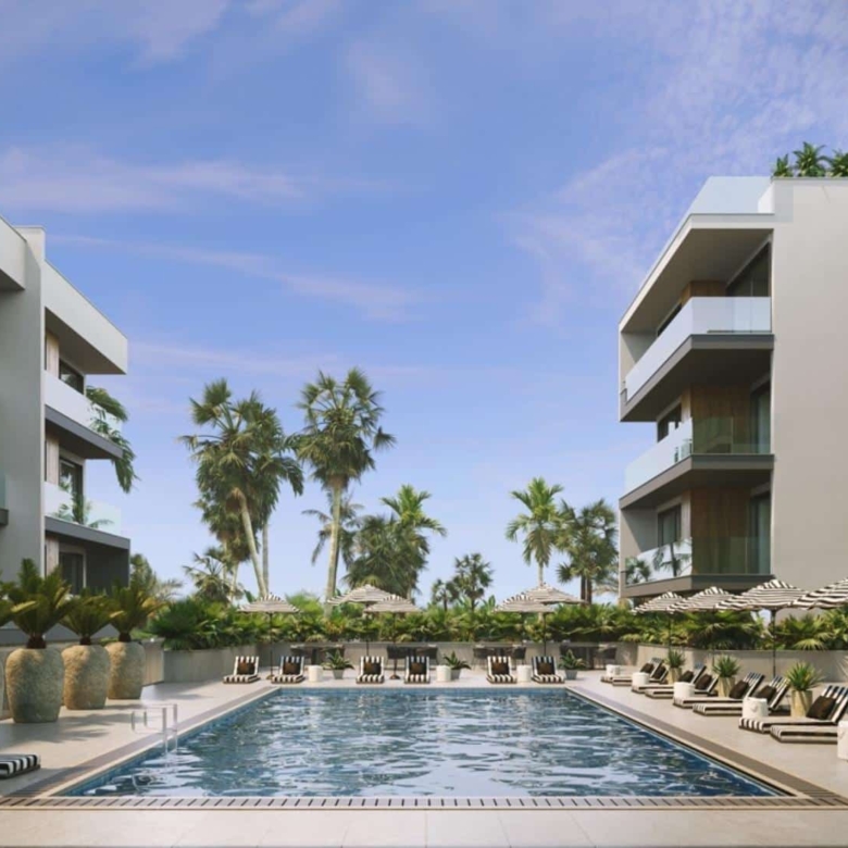 This is an upcoming gated development comprising of four block of flats with 1, 2 and 3 bedroom units with modern style. The complex includes a communal pool, fully equipped gym, sauna and steam bath with changing rooms, and many more. Flats with nice sea and mountain views with suspended ceilings for concealing the A/C units and massive balconies, granite counters and soft closing kitchen cabinets together with floor to ceiling bedroom wardrobes add extra comfort and luxury feeling. Exceptional residential location, opposite the Land of Tomorrow.