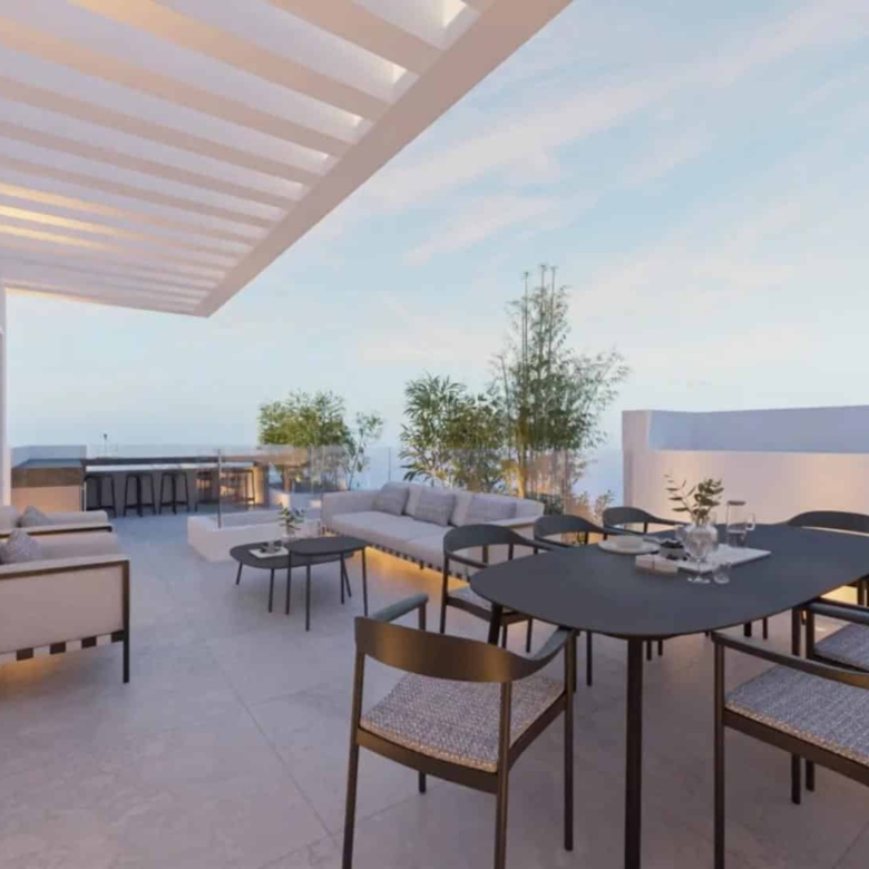 Introducing an exceptional Penthouse with spacious Roof Garden. This luxurious, modern gated resort comprises two buildings, each with 14 elegantly designed apartments. Central to the development is a shared pool area surrounded by a private green space, offering a serene escape. Apartments feature spacious, open-plan layouts with 3 meter-high ceilings, 2.5-meter doors, and optional top-to-bottom 3-meter cabinets and kitchens. Each unit includes designated covered parking, a storage room, and modern conveniences such as CCTV, EV charging provisions, and photovoltaic panels for common areas. With its blend of elegance, functionality, and energy efficiency, this project redefines luxury living.
