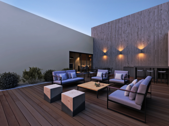 This contemporary residential complex offers a three-storey building comprising a total of eight exceptional apartments. The development includes five elegant 1-bedroom apartments and three spacious 2-bedroom apartments, each featuring covered verandas. Apartment 301 on the third floor boast a large veranda with a built-in barbecue, providing a perfect setting for outdoor entertainment.