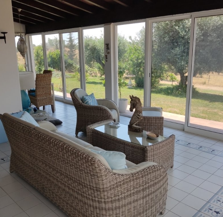 Giralda is a beacon of modern, sustainable living. Connected to the main electrical grid, the property is nearly self-sufficient, thanks to 24 solar panels and 12 batteries controlled by a state-of-the-art Victron system. Water is supplied by the property’s own bore hole, which draws from a large artesian basin that has never run dry, even in the driest years. This water is fed into a 4,000-liter underground tank, ensuring a reliable supply.