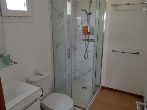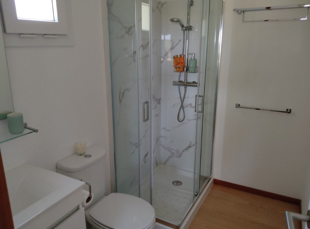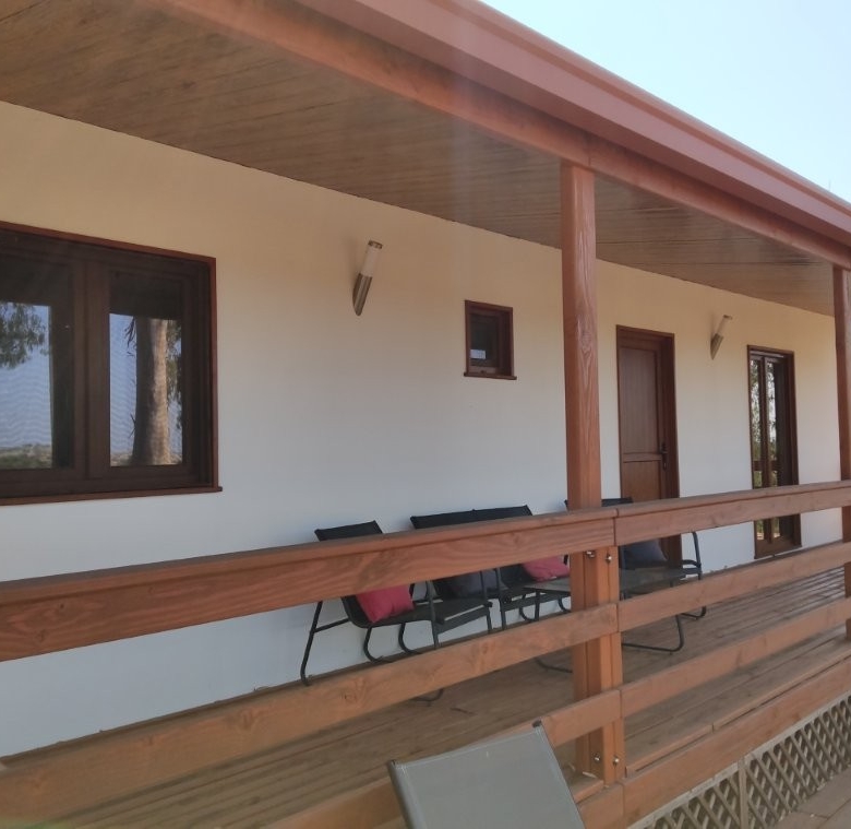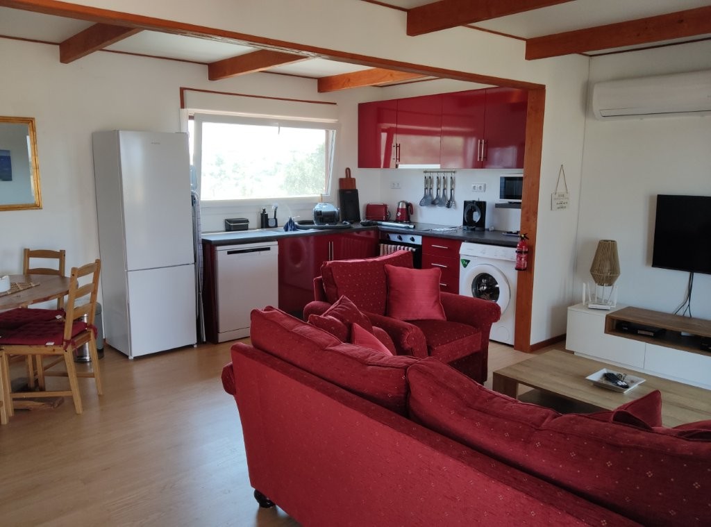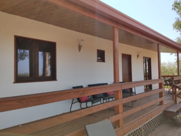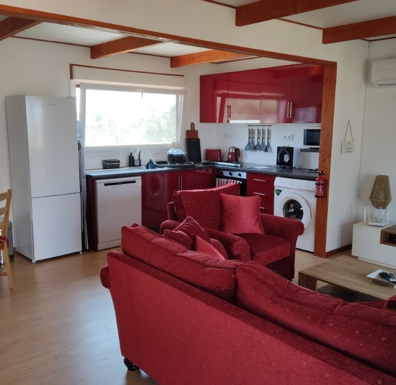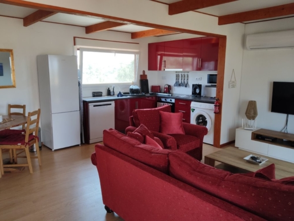A short distance from the main gates lies the almost new, two-bedroom, two-bathroom cottage. At 70 square meters, this timber-framed home offers incredible, far-reaching country views over the lake and landscape. It features an open-plan lounge, kitchen, and dining area, complete with a fridge freezer, dishwasher, washing machine, and a large outside deck. The cottage is fully furnished and ready for immediate use, making it an ideal space for guests, extended family, or a profitable holiday rental business (subject to license). Its proximity to the new Circuito do Sol racing circuit, just 20 minutes away, makes it a prime location for racing enthusiasts.