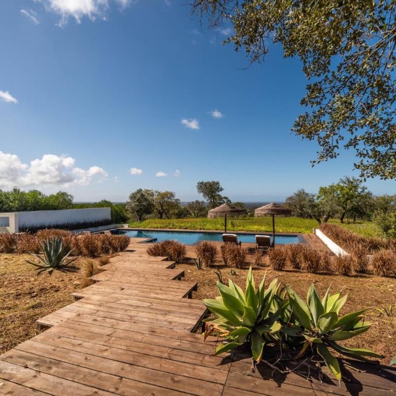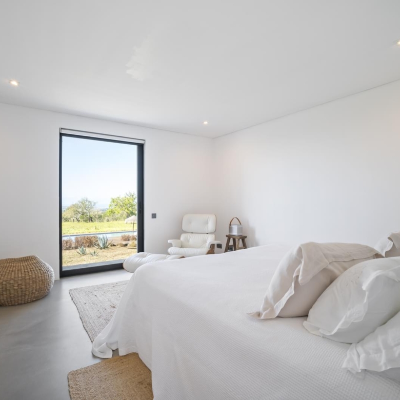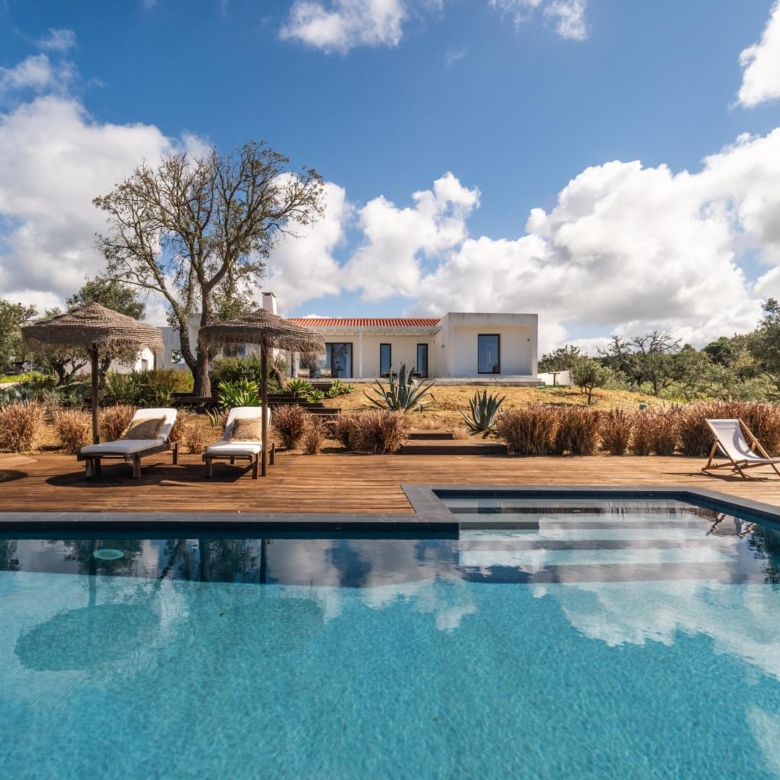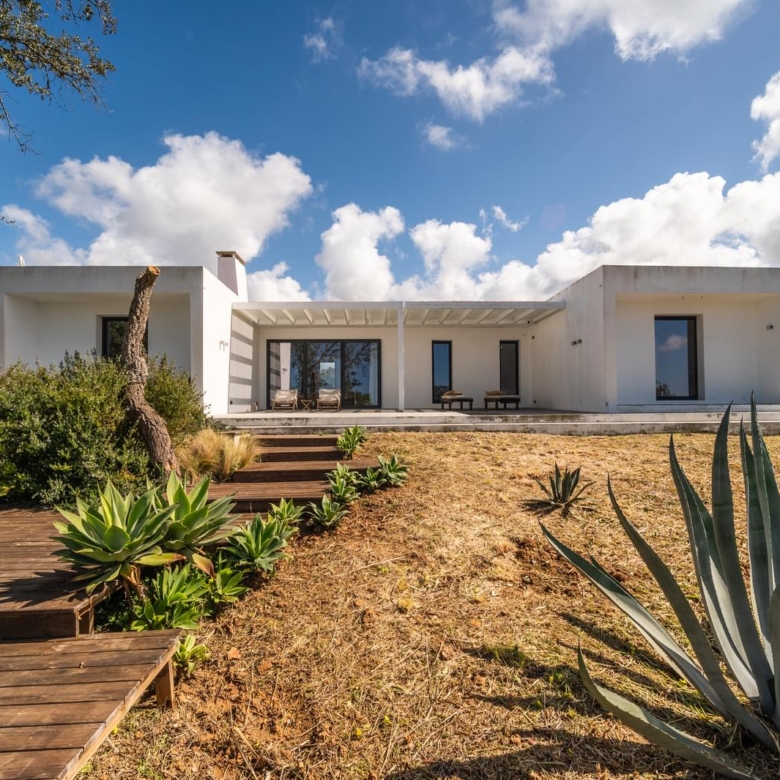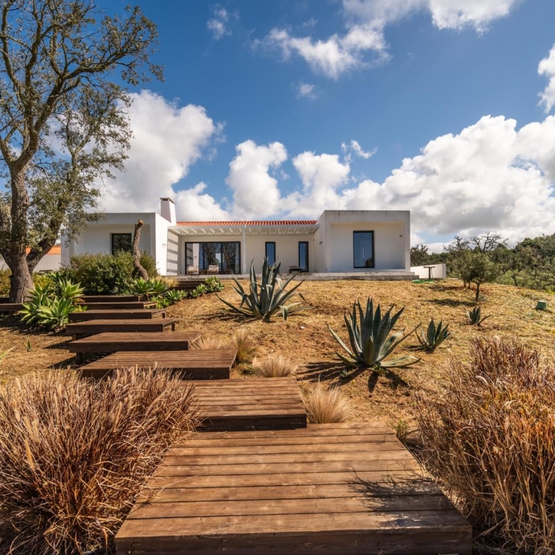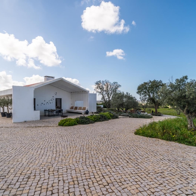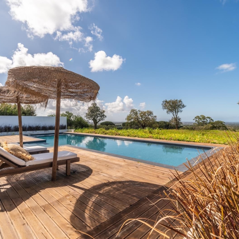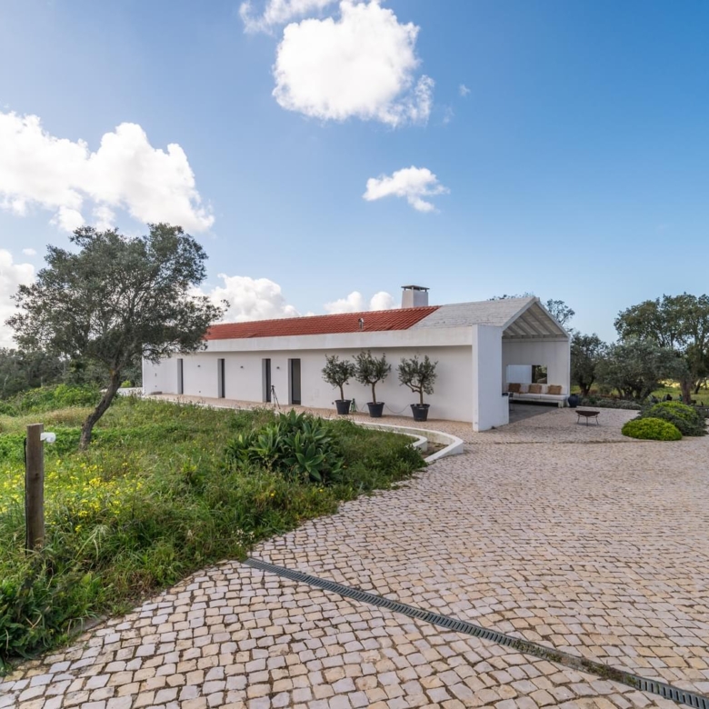 4 bedroom villa, modern and full of sunlight, with 200 sqm, implanted in a 23,500 sqm plot of land, facing South/West, offering peace, serenity and unobstructed views of the countryside and the Atlantic Ocean, with easy accesses to natural landscapes and recreational activities. It has an isolated building of 42 sqm that can be transformed into a guest house with 1 bedroom, a studio or an office space. There is also the possibility to build more 200 sqm of agricultural support buildings. The house has a modern architecture and offers a comfortable space to live and work or even to distance learning. The living room has an open fireplace, doors leading to a large dimensioned terrace, a garden and a 60 sqm swimming pool. The open space kitchen is fully equipped, connected to the outdoor dining room and leads to an outdoor living/dining room with an outdoor kitchen. The master bedroom has a walk-in closet and a private bathroom; all spaces in the house have direct access to the exterior. The bathrooms have radiant floor heating and include male and female customized vanity units. Outdoor features include garden areas with low maintenance automatic irrigation, olive, cork and pine trees. To support the residence there is a 12 sqm technical area, a private water well connected to a water treatment system, a solar hot water system and a separated laundry area. This property is ideal for a permanent residence where you can blend leisure and work, can be used as a family holiday home or to rent. The property was fully refurbished in 2020. Characteristics of the property: - Air conditioning - Solar panels for hot water - AEG household appliances - Automatic irrigation of the garden - Double glazed windows - Fully paved garage entrance (Portuguese pavement) - Good network infrastructure to support communication - Alarm and automatic remote gate with camera. Porta da Frente Christie’s is a real estate agency that has been operating in the market for more than two decades. Its focus lays on the highest quality houses and developments, not only in the selling market, but also in the renting market. The company was elected by the prestigious brand Christie’s International Real Estate to represent Portugal, in the areas of Lisbon, Cascais, Oeiras and Alentejo. The main purpose of Porta da Frente Christie’s is to offer a top-notch service to our customers. Property ID: PDF-PF32571 Price: €2,800,000 Property Size: 200.0 m2 Land Area: 23500.0 m2 Bedrooms: 4 Bathrooms: 2 Property Type: House Property Status: For Sale