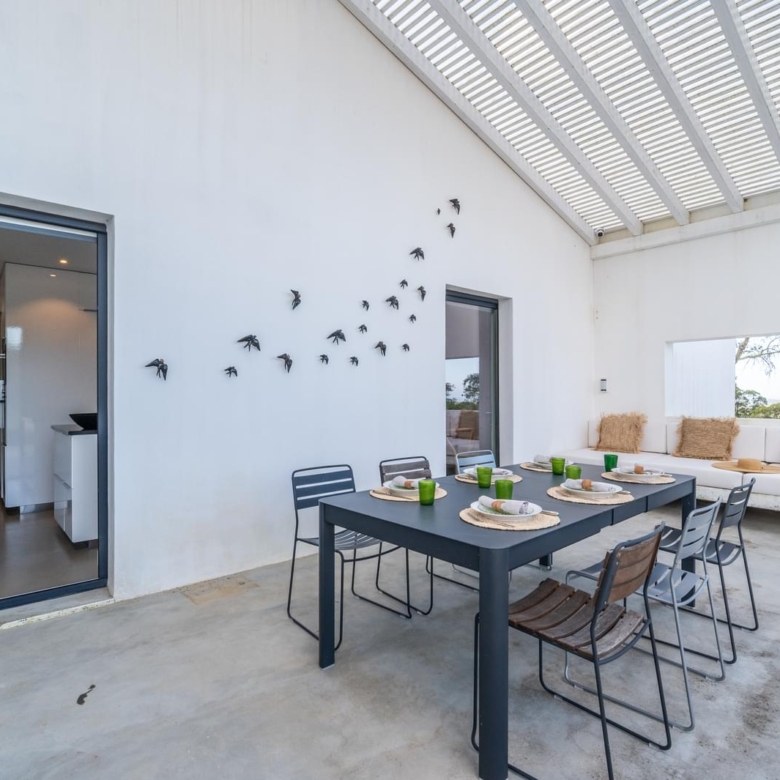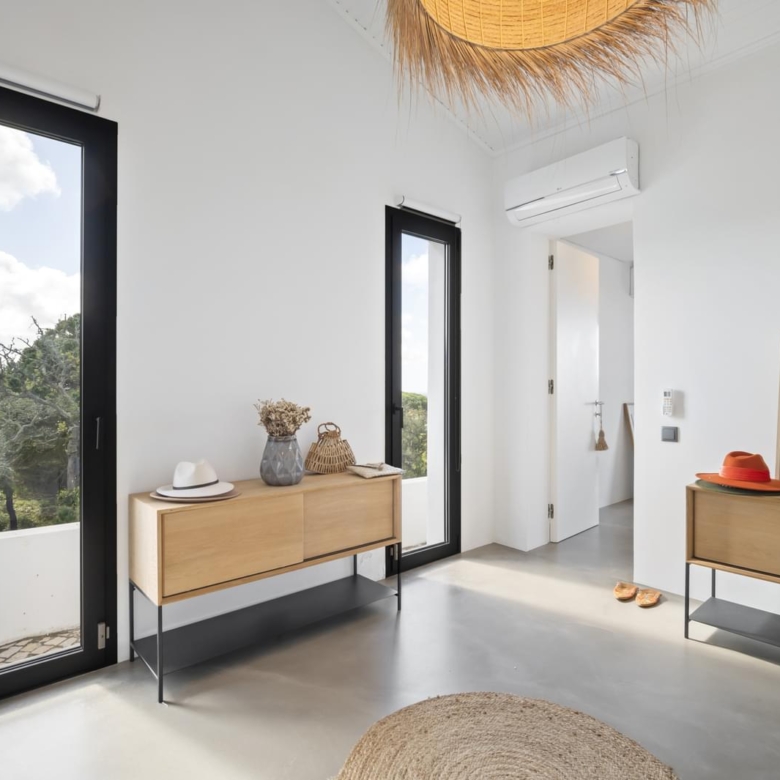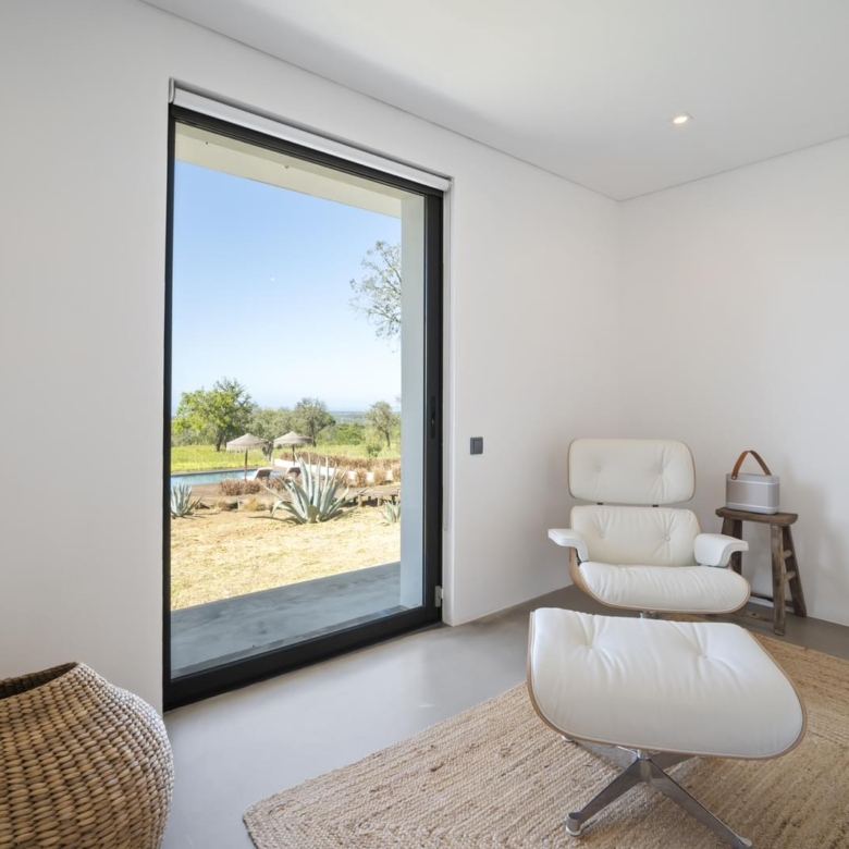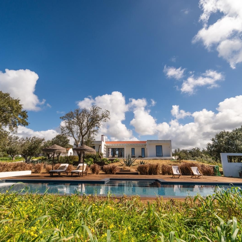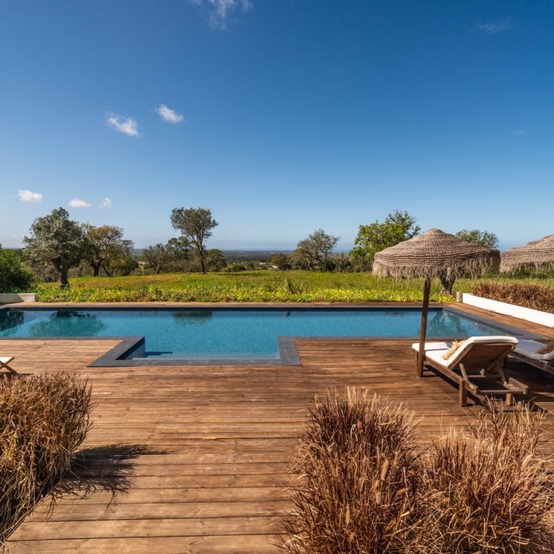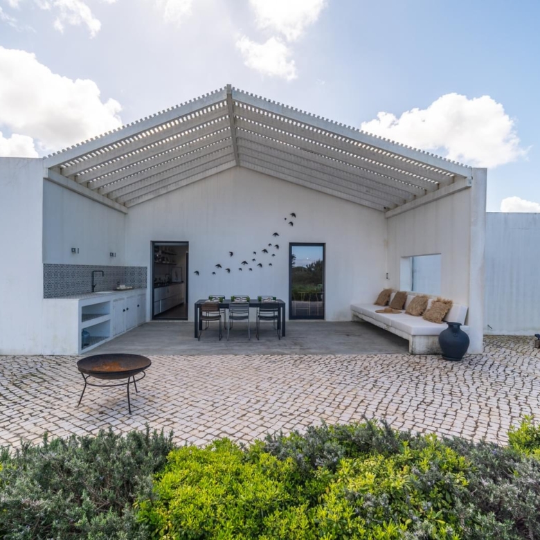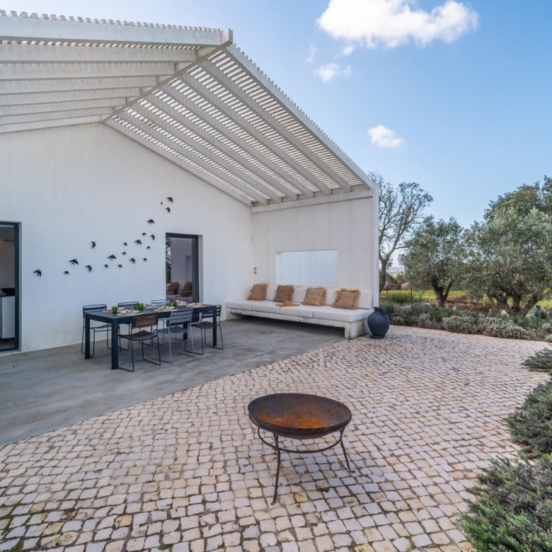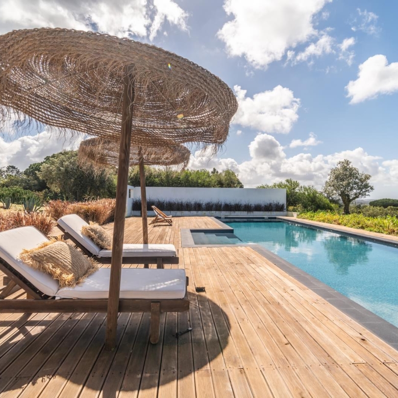 4 bedroom villa, modern and full of sunlight, with 200 sqm, implanted in a 23,500 sqm plot of land, facing South/West, offering peace, serenity and unobstructed views of the countryside and the Atlantic Ocean, with easy accesses to natural landscapes and recreational activities. It has an isolated building of 42 sqm that can be transformed into a guest house with 1 bedroom, a studio or an office space. There is also the possibility to build more 200 sqm of agricultural support buildings. The house has a modern architecture and offers a comfortable space to live and work or even to distance learning. The living room has an open fireplace, doors leading to a large dimensioned terrace, a garden and a 60 sqm swimming pool. The open space kitchen is fully equipped, connected to the outdoor dining room and leads to an outdoor living/dining room with an outdoor kitchen. The master bedroom has a walk-in closet and a private bathroom; all spaces in the house have direct access to the exterior. The bathrooms have radiant floor heating and include male and female customized vanity units. Outdoor features include garden areas with low maintenance automatic irrigation, olive, cork and pine trees. To support the residence there is a 12 sqm technical area, a private water well connected to a water treatment system, a solar hot water system and a separated laundry area. This property is ideal for a permanent residence where you can blend leisure and work, can be used as a family holiday home or to rent. The property was fully refurbished in 2020. Characteristics of the property: - Air conditioning - Solar panels for hot water - AEG household appliances - Automatic irrigation of the garden - Double glazed windows - Fully paved garage entrance (Portuguese pavement) - Good network infrastructure to support communication - Alarm and automatic remote gate with camera. Porta da Frente Christie’s is a real estate agency that has been operating in the market for more than two decades. Its focus lays on the highest quality houses and developments, not only in the selling market, but also in the renting market. The company was elected by the prestigious brand Christie’s International Real Estate to represent Portugal, in the areas of Lisbon, Cascais, Oeiras and Alentejo. The main purpose of Porta da Frente Christie’s is to offer a top-notch service to our customers. Property ID: PDF-PF32571 Price: €2,800,000 Property Size: 200.0 m2 Land Area: 23500.0 m2 Bedrooms: 4 Bathrooms: 2 Property Type: House Property Status: For Sale