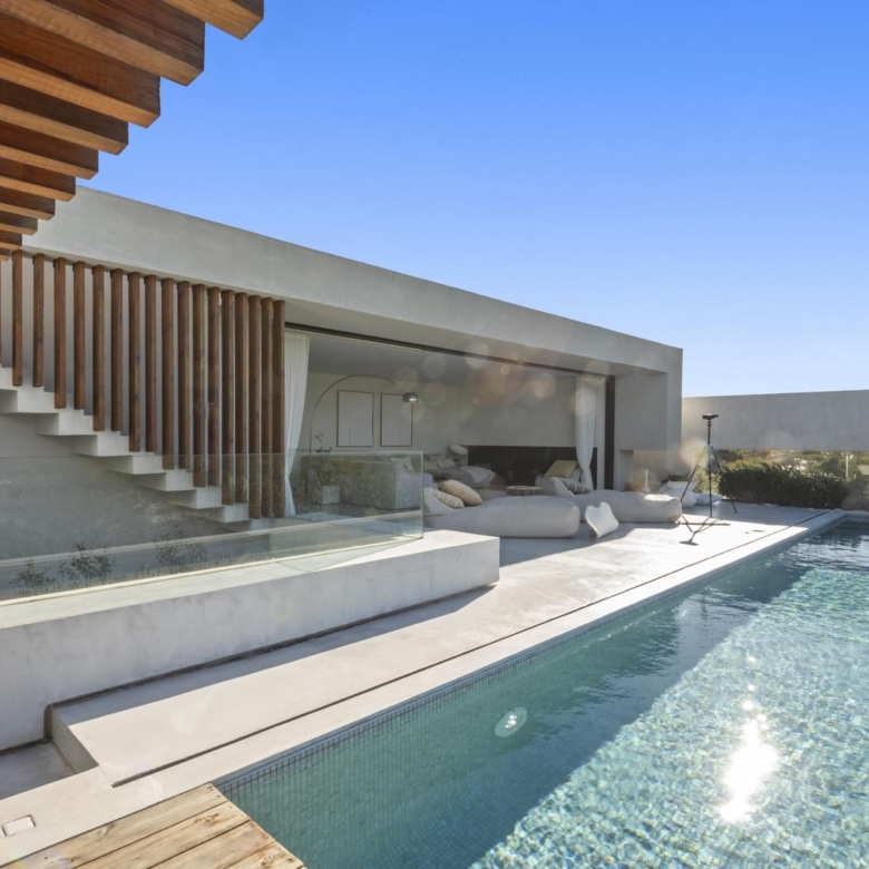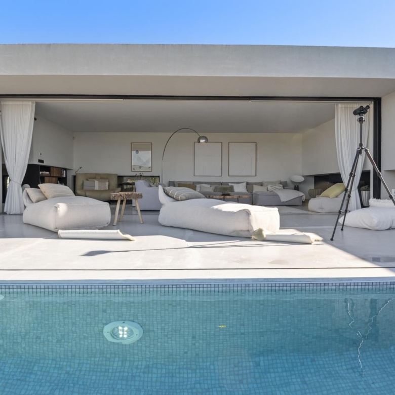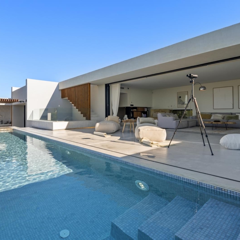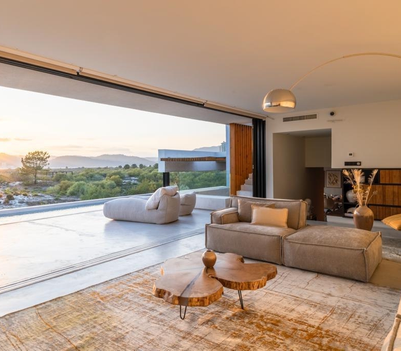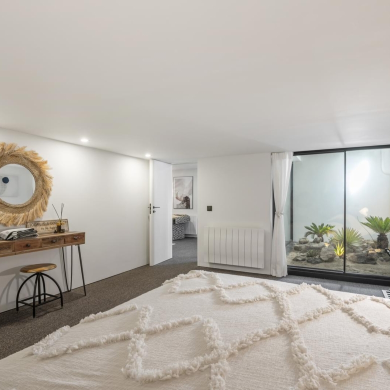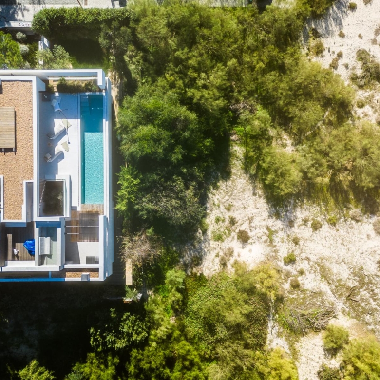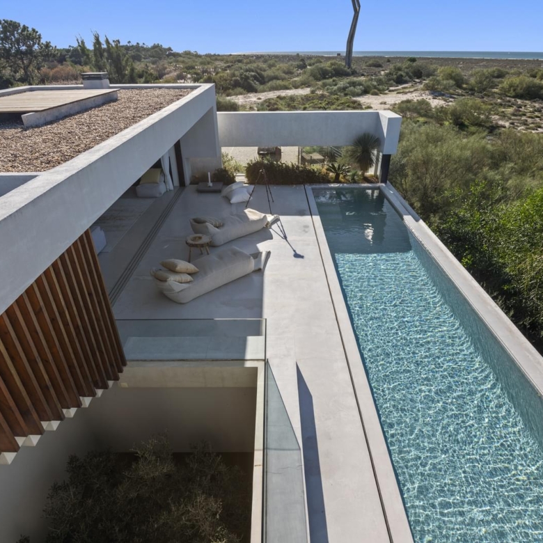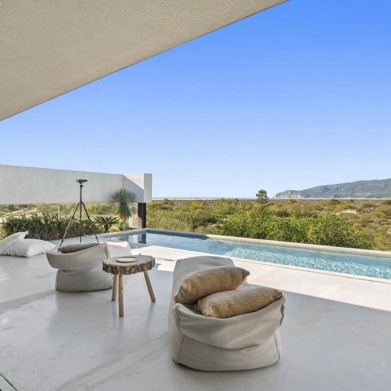 If you are looking for a home that is a true masterpiece of modern design in Portugal, this is your opportunity. This fantastic villa of modern lines stands out for its unique characteristics: wide and open spaces with a unique location, in the first line of the beach, with the dunes as landscape. The construction of this house is an example of rigor and excellence. Every detail has been carefully thought out and executed by our highly skilled builder. The solidity of the infrastructures is a priority, ensuring a perfect settlement even on sandy land, while the privacy of the residents was meticulously considered. The materials used follow the same quality standard. The highest quality microcement covers the entire exterior of the house, providing a contemporary and elegant look. The doors and windows are made of safety glass and natural wood, adding a harmonious aesthetic touch. On the ground floor, there are 4 bedrooms, all en-suite, each one with generous dimensions and bathrooms well connected with the exterior. The ‘Master bedroom’ is a real highlight, with 20 sqm and a luxurious bathroom with a steam sauna and a generous jacuzzi, perfect for relaxing. In addition, the space is complemented by ample storage areas and an interior garden that houses an olive tree with more than 2 thousand years, a living testimony of history. On this level you will also find the laundry area and the swimming pool’s engine room, ensuring convenience in all aspects. The icing on the cake is the first floor, where the house reveals its true value. Here, you will enjoy a panoramic view of more than 180 degrees, overlooking the dunes, the sea, the Arrabida’s mountain and the stunning mouth of the Sado River. The first floor is dedicated to your well-being. A swimming pool with 12 meters long and 2 meters wide offers an incredible view, making it the focal point of this floor. On this floor you have access to the terrace with a jacuzzi and a meditation area. The location ensures that it has a surrounding of pure dunes and vegetation, without nearby buildings to disturb your serenity. The villa also offers a surprisingly large dimensioned underground space, which comprises a bedroom, a cinema room, a games’ room and a bar. Luminosity is guaranteed by the openings for the interior gardens and a perfectly planned light installation. This is where everything happens in an open space, a real audience for the dune and maritime environment. The visual pollution is miles away, just across the mouth of the Sado River. Do not miss the opportunity to call home to this masterpiece. Come live the unique experience that this House in Troia Villas Mar has to offer. Your escape by the sea is waiting! Porta da Frente Christie’s is a real estate agency that has been operating in the market for more than two decades. Its focus lays on the highest quality houses and developments, not only in the selling market, but also in the renting market. The company was elected by the prestigious brand to represent Portugal, in the areas of Lisbon, Cascais, Oeiras, Sintra and Alentejo. The main purpose of Porta da Frente Christie’s is to offer a top-notch service to our customers. Property ID: PDF-PF31305 Price: €5,800,000 Property Size: 253.15 m2 Land Area: 555.0 m2 Bedrooms: 4 Bathrooms: 4