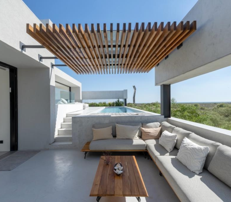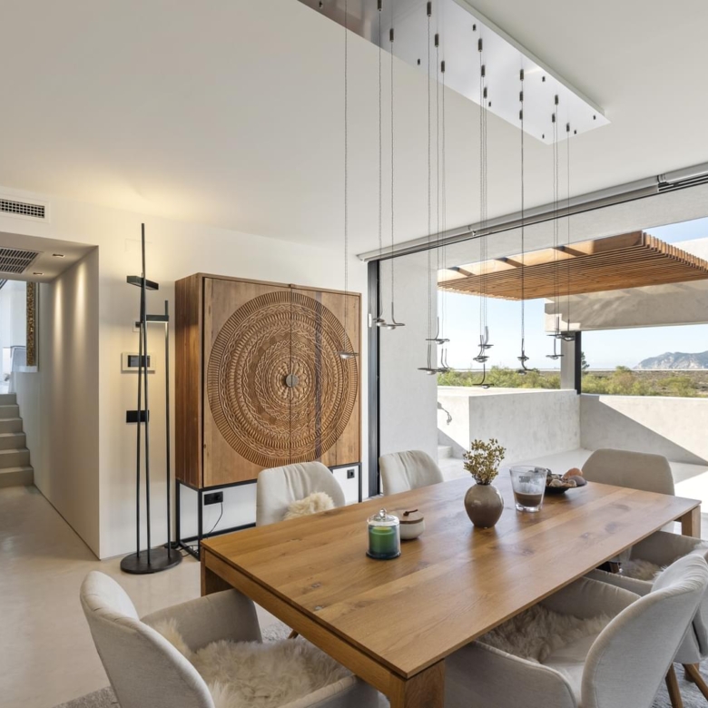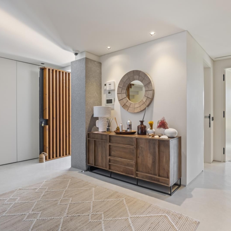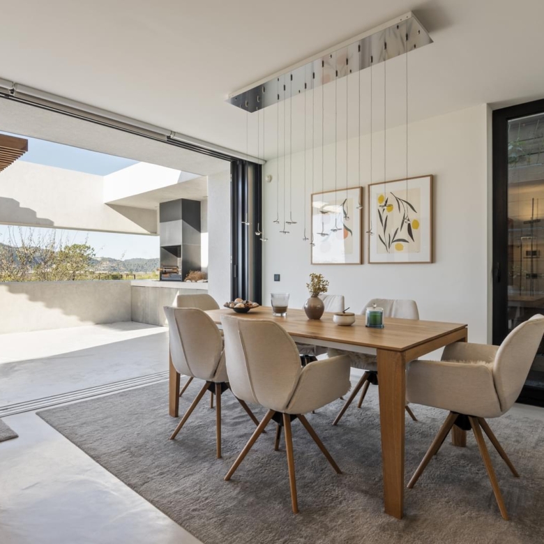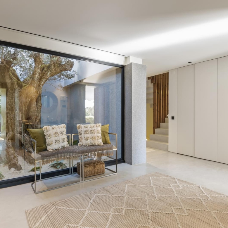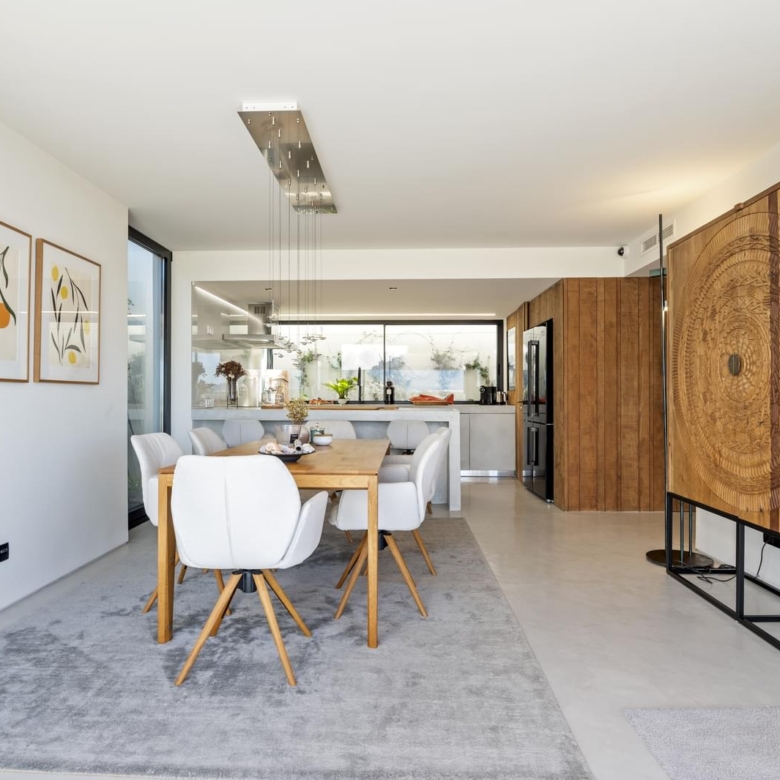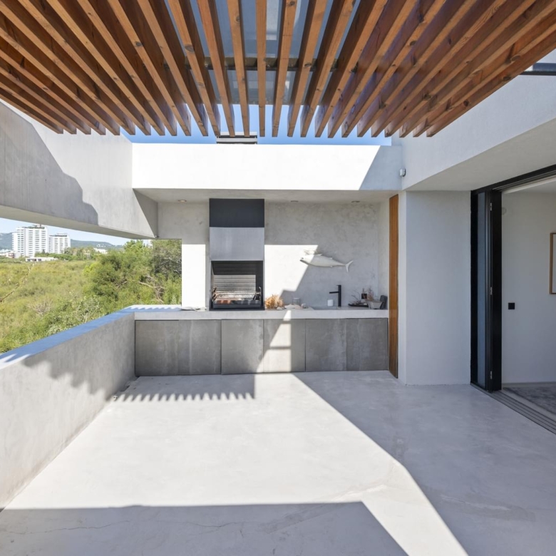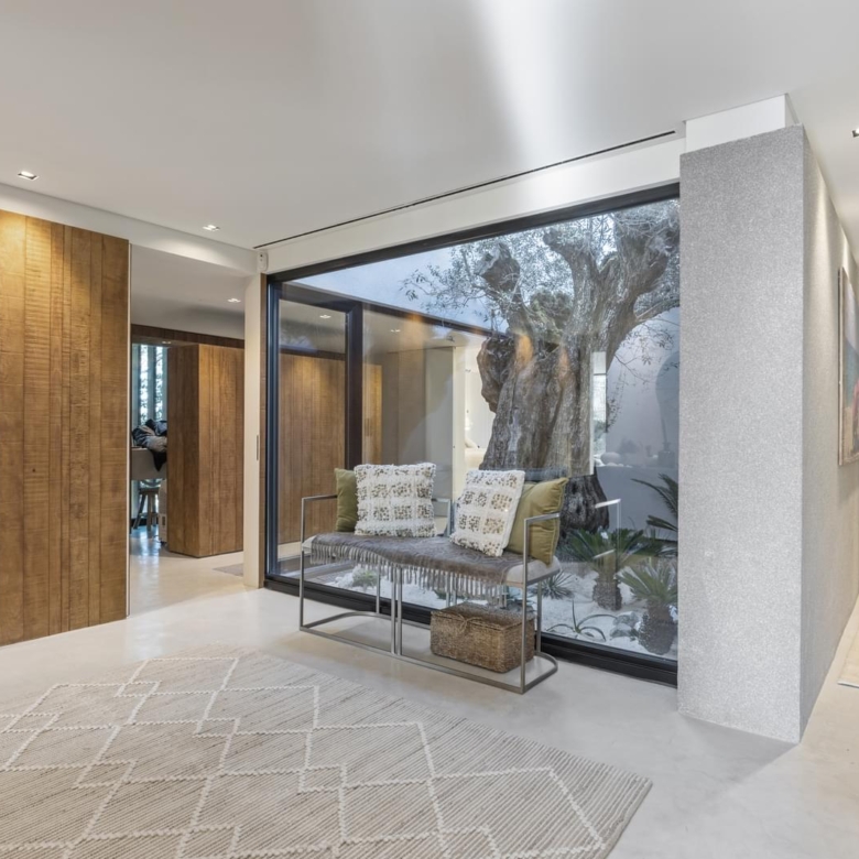 If you are looking for a home that is a true masterpiece of modern design in Portugal, this is your opportunity. This fantastic villa of modern lines stands out for its unique characteristics: wide and open spaces with a unique location, in the first line of the beach, with the dunes as landscape. The construction of this house is an example of rigor and excellence. Every detail has been carefully thought out and executed by our highly skilled builder. The solidity of the infrastructures is a priority, ensuring a perfect settlement even on sandy land, while the privacy of the residents was meticulously considered. The materials used follow the same quality standard. The highest quality microcement covers the entire exterior of the house, providing a contemporary and elegant look. The doors and windows are made of safety glass and natural wood, adding a harmonious aesthetic touch. On the ground floor, there are 4 bedrooms, all en-suite, each one with generous dimensions and bathrooms well connected with the exterior. The ‘Master bedroom’ is a real highlight, with 20 sqm and a luxurious bathroom with a steam sauna and a generous jacuzzi, perfect for relaxing. In addition, the space is complemented by ample storage areas and an interior garden that houses an olive tree with more than 2 thousand years, a living testimony of history. On this level you will also find the laundry area and the swimming pool’s engine room, ensuring convenience in all aspects. The icing on the cake is the first floor, where the house reveals its true value. Here, you will enjoy a panoramic view of more than 180 degrees, overlooking the dunes, the sea, the Arrabida’s mountain and the stunning mouth of the Sado River. The first floor is dedicated to your well-being. A swimming pool with 12 meters long and 2 meters wide offers an incredible view, making it the focal point of this floor. On this floor you have access to the terrace with a jacuzzi and a meditation area. The location ensures that it has a surrounding of pure dunes and vegetation, without nearby buildings to disturb your serenity. The villa also offers a surprisingly large dimensioned underground space, which comprises a bedroom, a cinema room, a games’ room and a bar. Luminosity is guaranteed by the openings for the interior gardens and a perfectly planned light installation. This is where everything happens in an open space, a real audience for the dune and maritime environment. The visual pollution is miles away, just across the mouth of the Sado River. Do not miss the opportunity to call home to this masterpiece. Come live the unique experience that this House in Troia Villas Mar has to offer. Your escape by the sea is waiting! Porta da Frente Christie’s is a real estate agency that has been operating in the market for more than two decades. Its focus lays on the highest quality houses and developments, not only in the selling market, but also in the renting market. The company was elected by the prestigious brand to represent Portugal, in the areas of Lisbon, Cascais, Oeiras, Sintra and Alentejo. The main purpose of Porta da Frente Christie’s is to offer a top-notch service to our customers. Property ID: PDF-PF31305 Price: €5,800,000 Property Size: 253.15 m2 Land Area: 555.0 m2 Bedrooms: 4 Bathrooms: 4