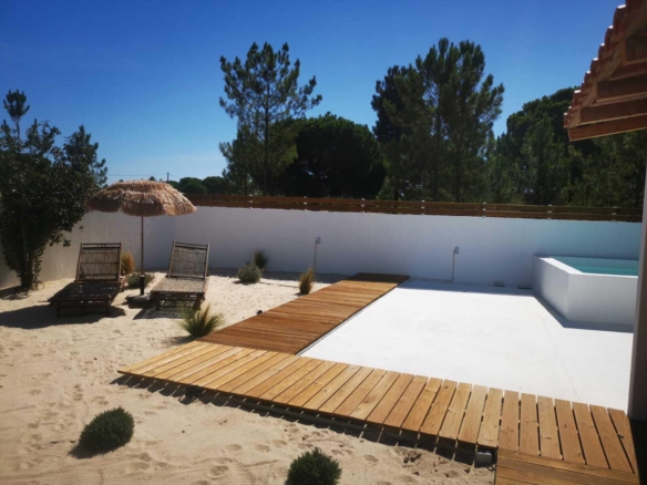 In the area of Grandola and Comporta, we are pleased to present you a unique opportunity in the real estate market. This charming typical Alentejo villa, located on a 306 sqm plot, with a 96 sqm construction area, has been completely renovated and is a perfect example of the rustic charm and modernity that this region has to offer. On the ground floor, this villa comprises a spacious living room with a cosy salamander heater, which provides the perfect environment for warm evenings, in open space with the very functional and practical American style kitchen that invites to the creation of delicious meals. In addition, a suite and a full private bathroom. The laundry area is an added convenience that makes everyday life easier. The villa has a spacious and bright mezzanine, which can work as a cinema room or an office space. A bedroom with embedded wardrobes to take advantage of the attic and a full private bathroom offer comfort and convenience. The garden is a real oasis. With a porch with barbecue for outdoor dining and a small swimming pool to cool off on summer days, this space invites to moments of relaxation and leisure. The serenity of the environment and the Alentejo landscape that surrounds it are simply magnificent. This house has been refurbished to combine the authenticity of the Alentejo characteristics with modern facilities. Its welcoming atmosphere is the perfect setting to create unforgettable memories with family and friends. If you are looking for a home that combines the Alentejo charm with modern comfort and you intend to enjoy the wonders of Grandola, Comporta and its beaches, this property is an extraordinary choice. Do not miss the opportunity to make this house your haven in the Alentejo. Porta da Frente Christie’s is a real estate agency that has been operating in the market for more than two decades. Its focus lays on the highest quality houses and developments, not only in the selling market, but also in the renting market. The company was elected by the prestigious brand Christie’s International Real Estate to represent Portugal, in the areas of Lisbon, Cascais, Oeiras, Sintra and Alentejo. The main purpose of Porta da Frente Christie’s is to offer a top-notch service to our customers. Property ID: PDF-PF31540 Price: €450,000 Property Size: 50.0 m2 Bedrooms: 4 Bathroom: 1