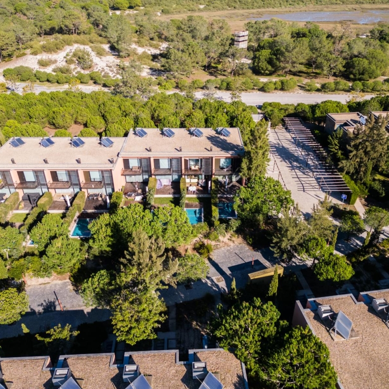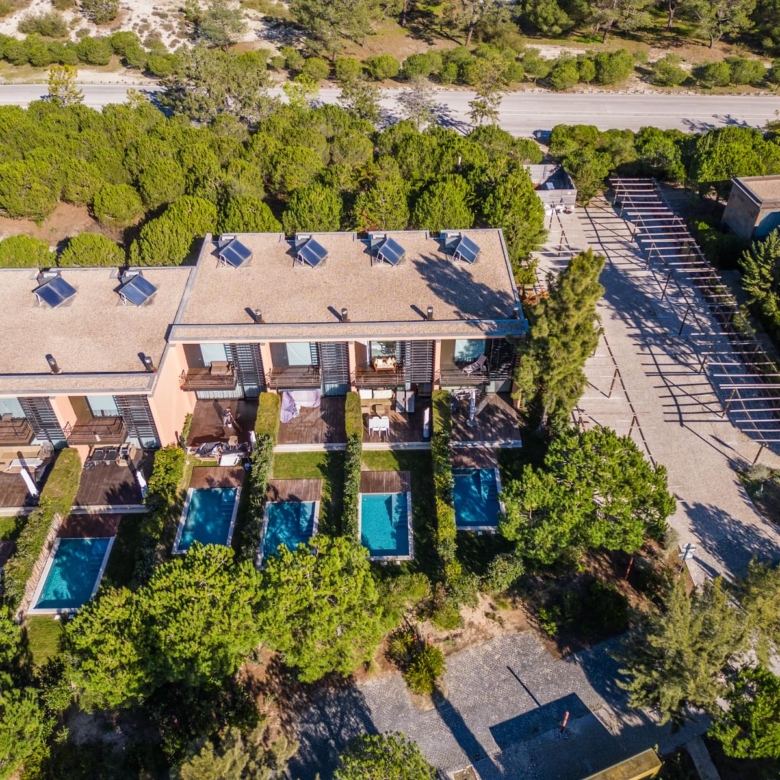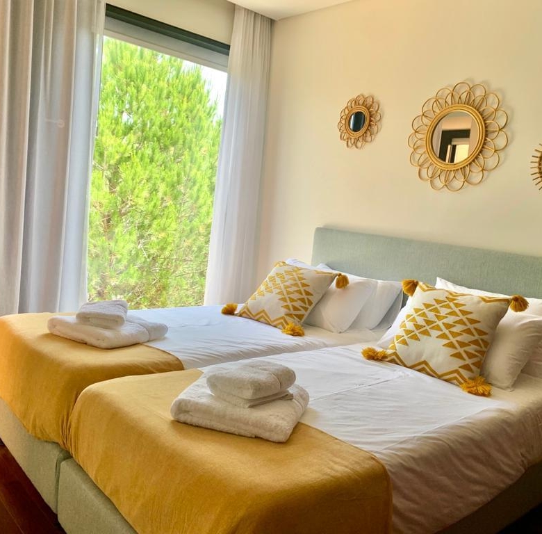 2+1 bedroom villa located in the stunning region of Troia, in the condominium Ocean Village Troia Resort. With a modern and elegant design, this property offers a quiet lifestyle, being a 600 meters walking distance from the beach. This spacious villa is distributed over two floors, comprising the ground floor a living room with access to an outdoor deck, garden and swimming pool, fully equipped kitchen, an office and social bathroom. On the first floor there are two bedrooms, one of them en suite, with a balcony with an east/west sun exposure, providing sun during the whole day. One of the great advantages of this villa is the private swimming pool with salted water, which offers refreshing and relaxing moments during the hot summer days. In addition, the private garden is an invitation to enjoy moments outdoors. The location of this property is truly privileged , as it is situated in an exclusive condominium that offers direct access to the beach. Troia and Comporta are known for their paradisiacal beaches of white sand and crystal clear waters, providing a peaceful and serene environment to enjoy the sea. Troia and Comporta offer a sophisticated and relaxed lifestyle. Here you will find a unique combination of untouched nature, rich local culture and excellent dining options. The region is also a favorite destination for lovers of water sports and outdoor activities such as golf, hiking and cycling. Porta da Frente Christie’s is a real estate agency that has been operating in the market for more than two decades. Its focus lays on the highest quality houses and developments, not only in the selling market, but also in the renting market. The company was elected by the prestigious brand to represent Portugal, in the areas of Lisbon, Cascais, Oeiras, Sintra and Alentejo. The main purpose of Porta da Frente Christie’s is to offer a top-notch service to our customers. Do not miss this opportunity to acquire this stunning villa in Comporta and enjoy a unique lifestyle. Contact us for more information and to schedule your visit. Property ID: PDF-PF30900 Price: €995,000 Property Size: 200.0 m2 Bedrooms: 2 Bathrooms: 4 Property Type: House Property Status: For Sale