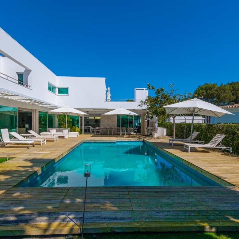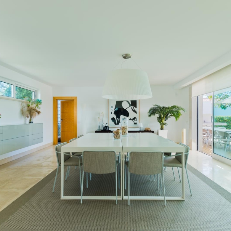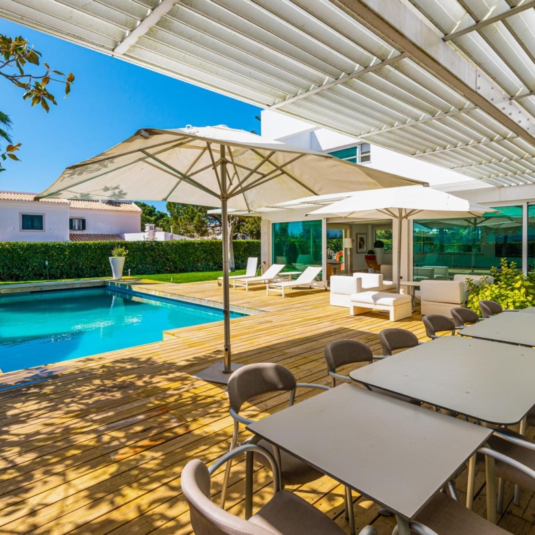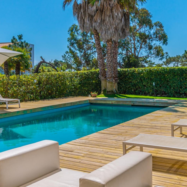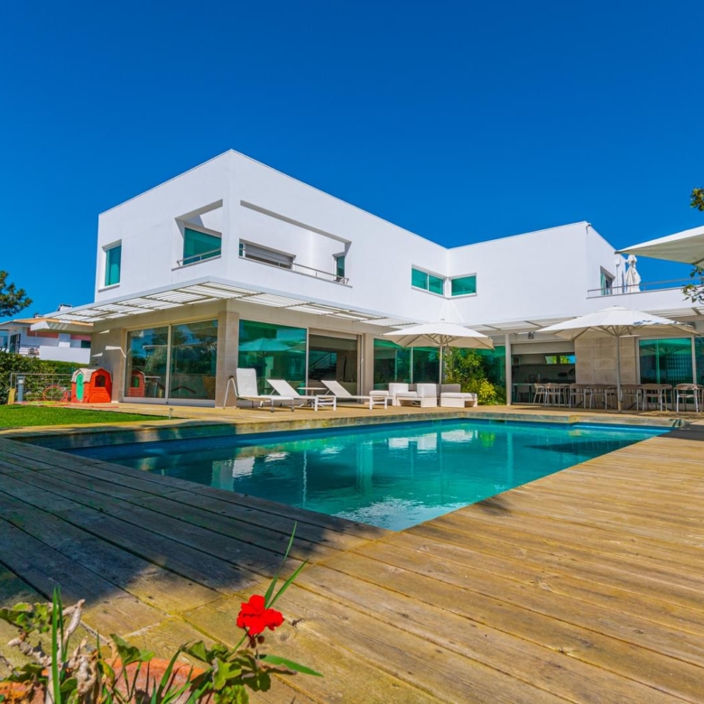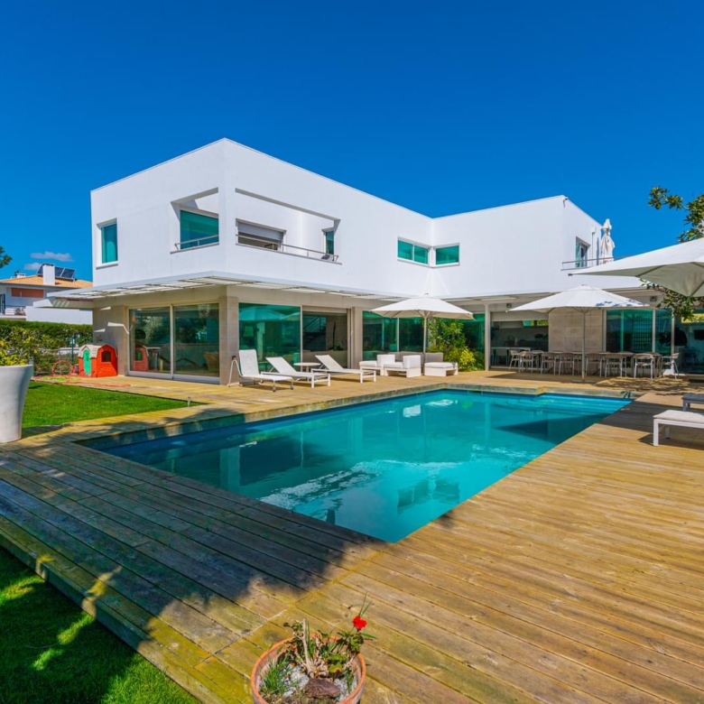 In the prestigious condominium Soltroia arises this magnificent 5 bedroom villa, of modern lines (has already been magazine cover), located 100 metres away from the beach, integrated in a 1009 sqm lot, in an excellent condition and with materials of excellence. With a panoramic sea view from the first floor and an 887.71 sqm construction area, it is composed as follows: On the ground floor: * 1 Suite * Social Bathroom * 1 office * Kitchen * An ample living room with view to the swimming pool The first floor comprises: * 4 suites * 1 suite with closet The basement comprehends: * Cinema room * Games’ room * Gym * Turkish bath and sauna * Wine Cellar * Support Bathroom that has access from the outside area * Laundry area * Storage area * Garage * Engine room The villa is inserted in the prestigious development Soltroia, which includes 24 hour security at the disposal of its residents, providing also a supermarket, sports infrastructures, playgrounds and an internal network of bicycle paths. Soltroia is a touristic and residential development in the peninsula of Troia, Municipality of Grandola, District of Setubal, 40 km south of Lisbon, being around one hour away from the centre of the city and the access to the Humberto Delgado Airport. Located only a few minutes away from the marina of Troia, the emblematic Casino of Troia and the Golf course, allowing you to rejoice from several attractions, while enjoying the beauty of the region. To the south, and only a few minutes away, there is the much appreciated area of Comporta and the beaches of Pego and Carvalhal, with excellent and exquisite restaurants for all tastes. Also in this area you can enjoy the horse riding experience. Its incredible location makes it easy to reach Setubal, with two river terminals ferries and catamarans available. If you are looking for a villa with generous areas, which allows you to relax and live with family and friends, in a privileged landscape, be sure to schedule your visit. Porta da Frente Christie’s is a real estate agency that has been operating in the market for more than two decades. Its focus lays on the highest quality houses and developments, not only in the selling market, but also in the renting market. The company was elected by the prestigious brand Christie’s – one of the most reputable auctioneers, Art institutions and Real Estate of the world – to be represented in Portugal, in the areas of Lisbon, Cascais, Oeiras, Sintra and Alentejo. The main purpose of Porta da Frente Christie’s is to offer a top-notch service to our customers. Property ID: PDF-PF29984 Price: €3,500,000 Property Size: 490.5 m2 Land Area: 1009.0 m2 Bedrooms: 5 Bathrooms: 7 Property Type: House Property Status: For Sale