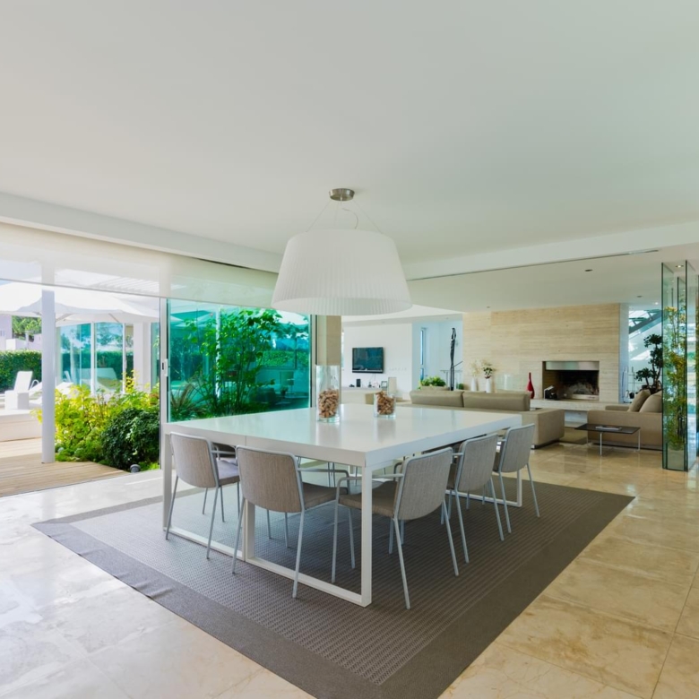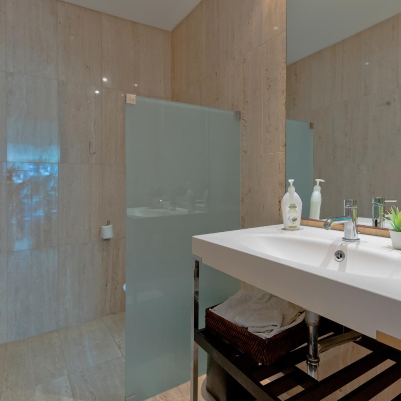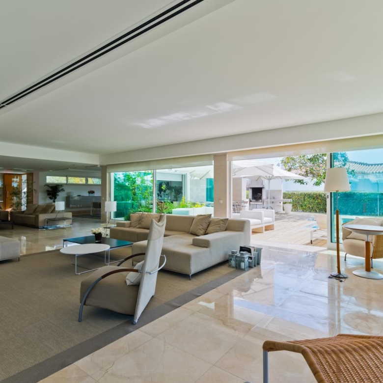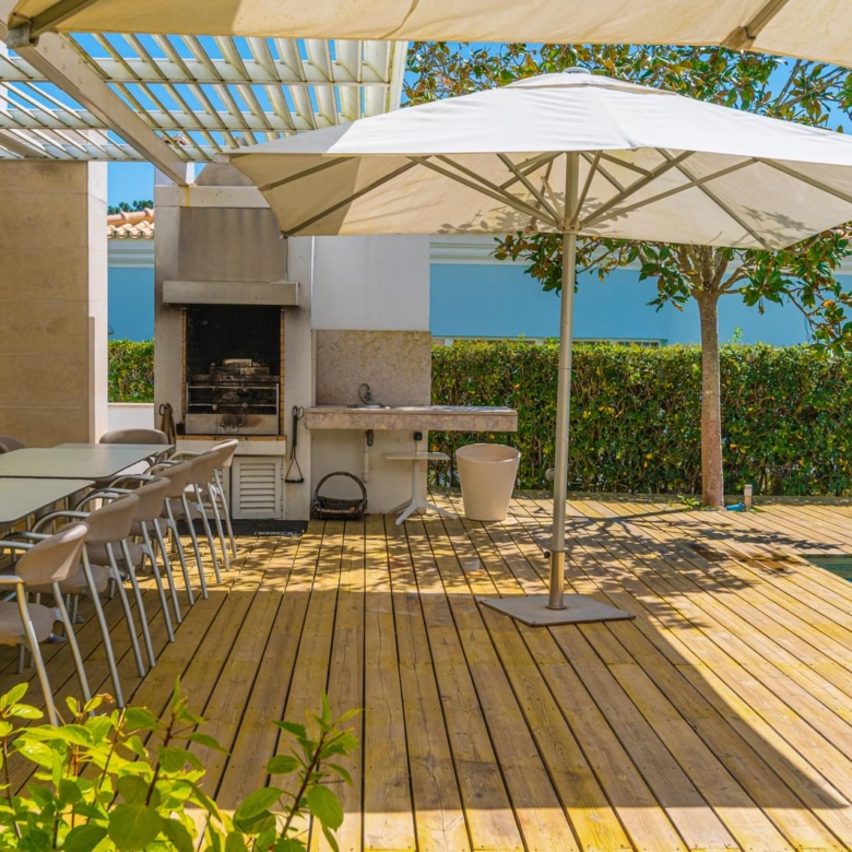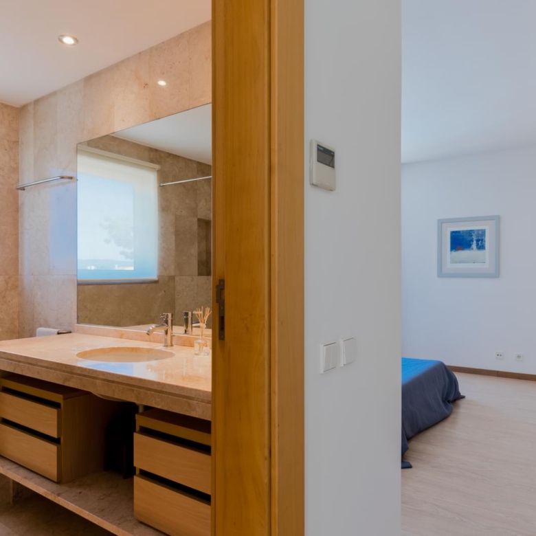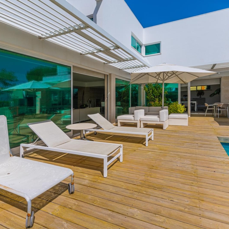 In the prestigious condominium Soltroia arises this magnificent 5 bedroom villa, of modern lines (has already been magazine cover), located 100 metres away from the beach, integrated in a 1009 sqm lot, in an excellent condition and with materials of excellence. With a panoramic sea view from the first floor and an 887.71 sqm construction area, it is composed as follows: On the ground floor: * 1 Suite * Social Bathroom * 1 office * Kitchen * An ample living room with view to the swimming pool The first floor comprises: * 4 suites * 1 suite with closet The basement comprehends: * Cinema room * Games’ room * Gym * Turkish bath and sauna * Wine Cellar * Support Bathroom that has access from the outside area * Laundry area * Storage area * Garage * Engine room The villa is inserted in the prestigious development Soltroia, which includes 24 hour security at the disposal of its residents, providing also a supermarket, sports infrastructures, playgrounds and an internal network of bicycle paths. Soltroia is a touristic and residential development in the peninsula of Troia, Municipality of Grandola, District of Setubal, 40 km south of Lisbon, being around one hour away from the centre of the city and the access to the Humberto Delgado Airport. Located only a few minutes away from the marina of Troia, the emblematic Casino of Troia and the Golf course, allowing you to rejoice from several attractions, while enjoying the beauty of the region. To the south, and only a few minutes away, there is the much appreciated area of Comporta and the beaches of Pego and Carvalhal, with excellent and exquisite restaurants for all tastes. Also in this area you can enjoy the horse riding experience. Its incredible location makes it easy to reach Setubal, with two river terminals ferries and catamarans available. If you are looking for a villa with generous areas, which allows you to relax and live with family and friends, in a privileged landscape, be sure to schedule your visit. Porta da Frente Christie’s is a real estate agency that has been operating in the market for more than two decades. Its focus lays on the highest quality houses and developments, not only in the selling market, but also in the renting market. The company was elected by the prestigious brand Christie’s – one of the most reputable auctioneers, Art institutions and Real Estate of the world – to be represented in Portugal, in the areas of Lisbon, Cascais, Oeiras, Sintra and Alentejo. The main purpose of Porta da Frente Christie’s is to offer a top-notch service to our customers. Property ID: PDF-PF29984 Price: €3,500,000 Property Size: 490.5 m2 Land Area: 1009.0 m2 Bedrooms: 5 Bathrooms: 7 Property Type: House Property Status: For Sale