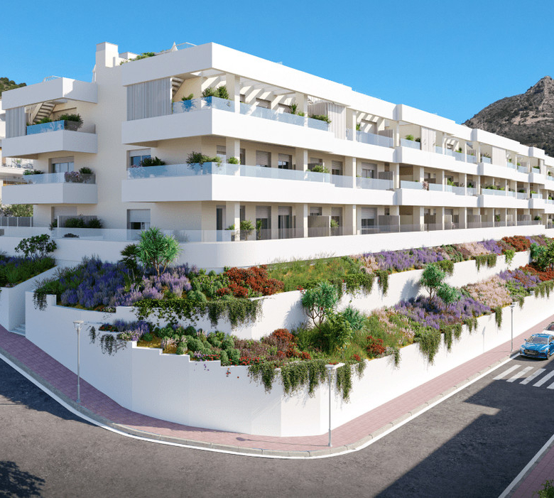 Located on Calle Menta in Benalmádena (Málaga), this new residential development offers a private community of 70 homes with 2 and 3 bedrooms, featuring a wide variety of layouts, with penthouses standing out. The architecture and design focus on highlighting the terraces, which are designed to capture the natural light and sea breeze of the Costa del Sol, as well as offer sea views.