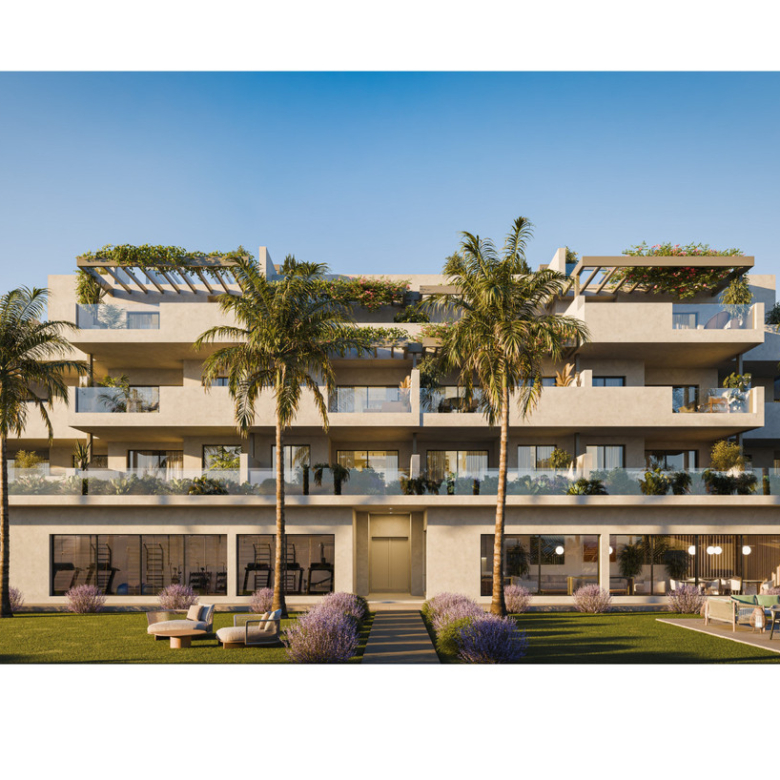 New development located in Casares Costa, Costa del Sol, featuring 99 two- and three-bedroom homes with spacious terraces, private gardens on ground floors, penthouses with solarium and outstanding sea views.