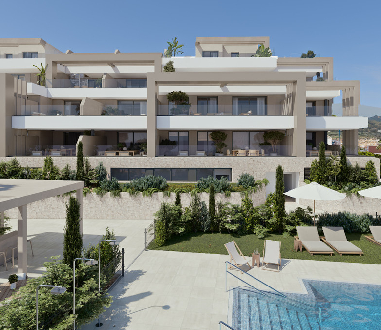 Surrounded by manicured greenery and mountain views, this development offers peaceful seclusion while being mere minutes from the vibrant life of Estepona.