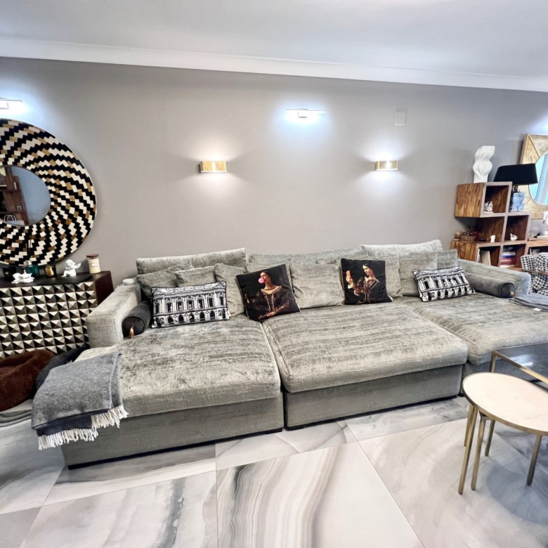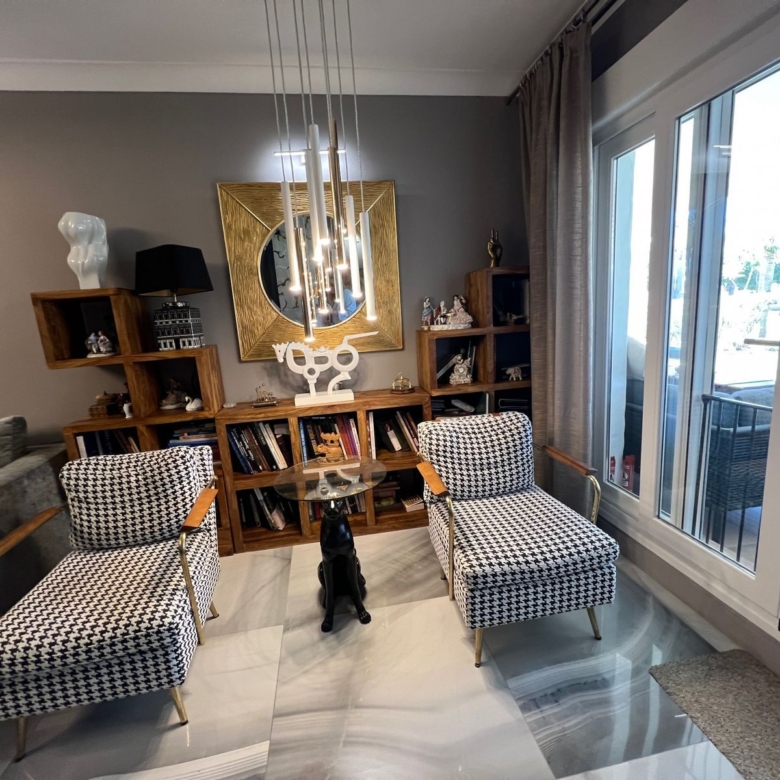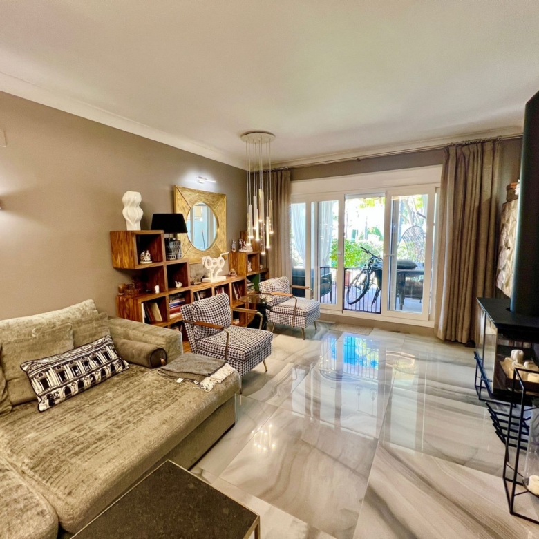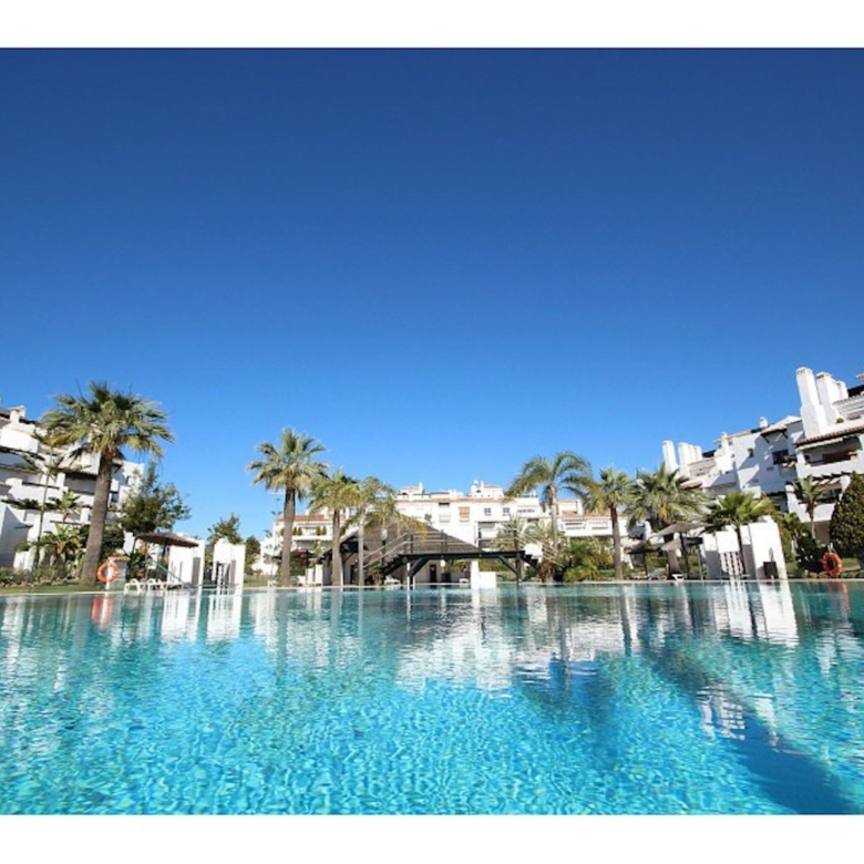 Spacious ground floor apartment beachfront promenade San Pedro de Alcantara. Costa del SolSpacious ground floor apartment with garden west facing very bright located on the beachfront next to the promenade of San Pedro de Alcantara. Area with many restaurants, tennis and paddle sports club, boulevard and only 4 minutes from Puerto Banus. Closed urbanization with 24 hour security, two large lake-type pools surrounded by large and well-kept community gardens. The apartment has a living-dining room with direct access to the porch, to the gardens and swimming pools of the urbanization, fully equipped kitchen with terrace and laundry room, master bedroom en-suite with dressing area and bathroom with shower , another three very spacious and bright double rooms, two guest bathrooms. The apartment has never been recently reformed to high standarts. it has a large underground parking space and storage room available for private use.