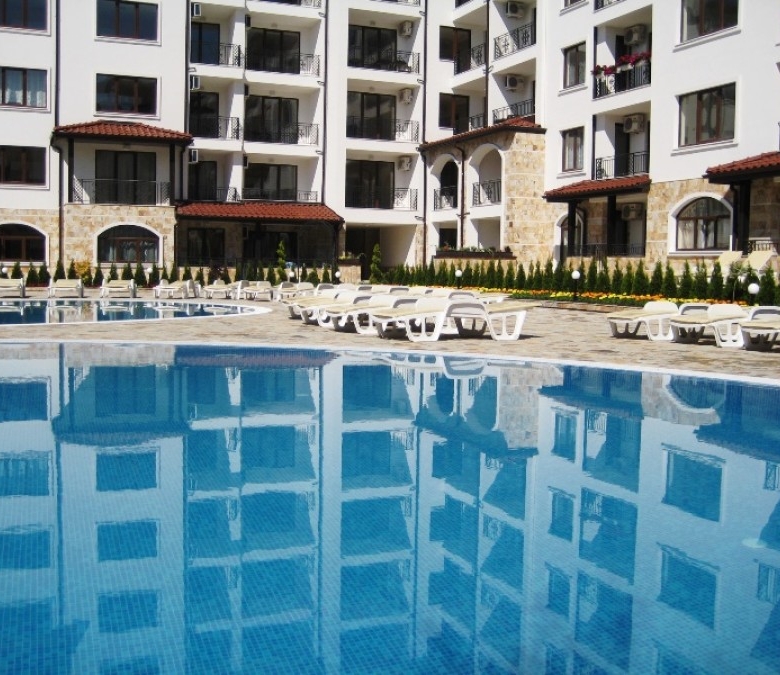 Ground floor studio with garden views, 31 sq.m., in Apollon apartments, Ravda Apollon apartments have fantastic location – only 3 min walking distance to the sandy beach (popular Aurelia beach). The complexes are situated between Ravda and Nessebar, within short walking distance to various shops, restaurants and bars, bus stop, etc. attractions and amenities. The Aqua Park is 300 m away. There are 7 swimming-pools on dispose of the owners and their guests, 2 restaurants, SPA area, gym, sauna, security, parking and 3 children’s playgrounds. Annual maintenance fee – 10 EUR/sq.m. The studio is situated on the ground floor and has a total living area of 31 sq.m., comprising of: – hallway; – open -plan kitchen with bedroom area; – Bathroom/WC; – balcony with views to the complex. The price includes all furniture as shown on the photos. “APOLLON” is a closed complex surrounded by picturesquely designed spaces: public gardens with a variety of decorative vegetation, a childrens playground, a swimming pool for children and adults, an area for recreation and walking. Located between Ravda and Nessebar, just 200 meters from the beach and 300 meters from the Paradise Water Park. The Apollon complex consists of 10 five-story buildings, each of which has its own swimming pool with a childrens section and an extensive beach area. The location provides guests with two restaurants, a cafe, a minimarket, a small spa center, tennis courts, a childrens playground, and free parking. ✔ 7 swimming pools for adults and children ✔2 restaurants with full menus, dishes and drinks ✔3 playgrounds ✔SPA and sports center with fitness area: sauna, steam bath, ice room, jacuzzi, contrast shower, anti-cellulite capsule, massages, etc. ✔24-hour security and video surveillance of common areas.