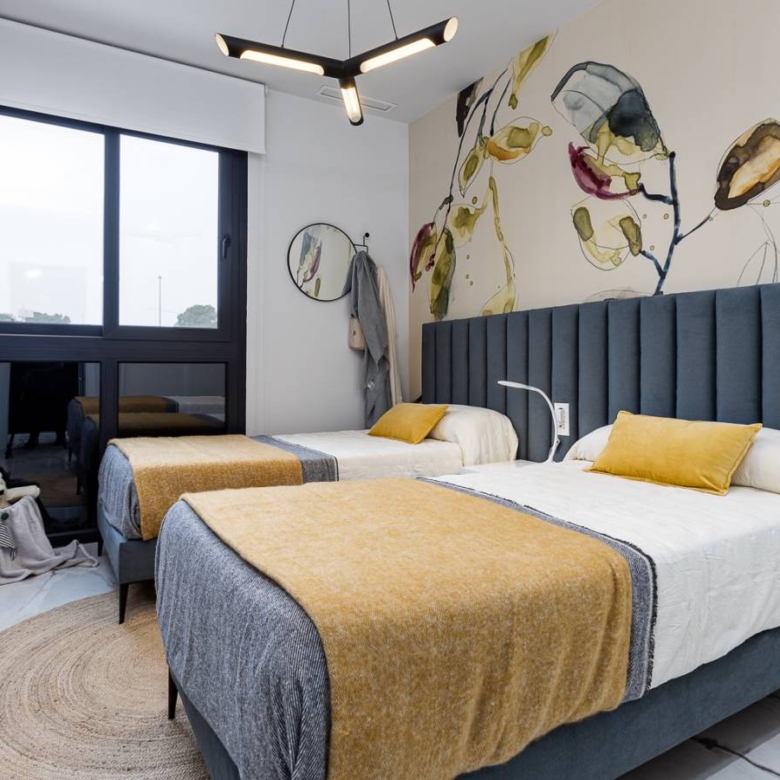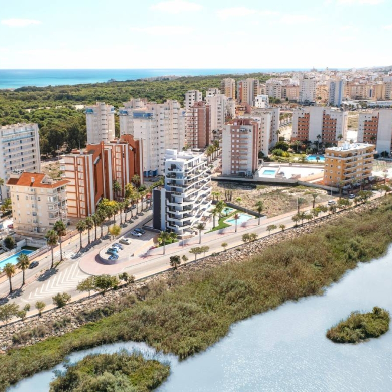 Apartments in Guardamar del Segura, Costa Blanca, Spain Flats with 2 bedrooms and 2 bathrooms, situated in front of the Segura River and close to the marina and beach of Guardamar. The development consists of a modern style building with 31 flats with large terraces from 20m2, underground parking and closed storage room. The building will be composed of 9 heights being the highest penthouses with main terrace and private solarium. INCLUDED IN THE PRICE: - Furniture package- White goods- Air conditioning hot/cold- Interior and exterior LED lighting- Hot water by aerothermal heating- Underfloor heating in bathrooms- Electric blinds with remote control- Decoration, TV, coffee machine, toaster, iron and ironing board, kitchen utensils- Closed underground storage room THE RESIDENTIAL HAS: - Luxury finishes- Interior design service- Communal swimming pool- Garage included- Landscaped areas- Energy saving Property ID: GH-307763 Price: €255,000 Property Size: 80 m2 Land Area: 80 m2 Bedrooms: 2 Bathrooms: 2 Property Type: Apartment Property Status: For Sale