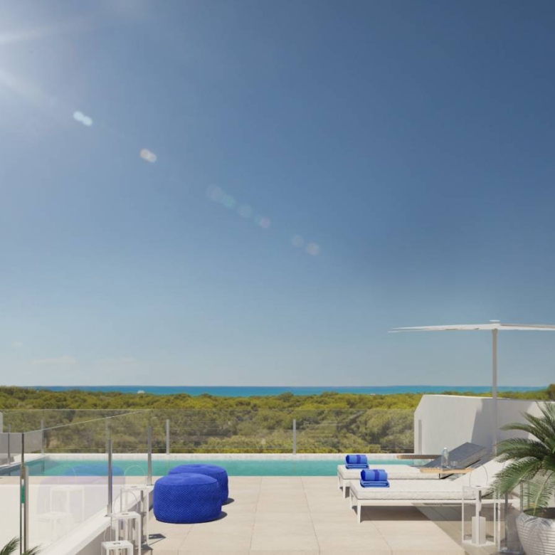 Apartments in Guardamar del Segura, Costa Blanca Spectacular homes located in the center of Guardamar del Segura. Each of the homes has high-quality finishes and is designed with attention to detail, offering a comfortable and inspiring lifestyle. * 3 or 4 bedrooms* Optional garage* Panoramic views of a huge pine forest and the Mediterranean Sea* Designer community pool* Top quality finishes It has a solarium with a community pool and a fitness space with a circuit of bio-healthy machines, where you can enjoy the sun and the impressive views while you cool off in the water and play sports. This heated pool with jacuzzi, counter-current swimming system and powered by photovoltaic panels is the perfect place to enjoy moments of relaxation and fun throughout the year. An investment in health and well-being to enjoy at home. The houses are located in a building with a contemporary and elegant design, with large windows that offer impressive panoramic views of the pine forest, the sea and the castle. The location of the development is unbeatable, since it is close to all the necessary services for day to day, such as supermarkets, banks, pharmacies and shops. In addition, it is located in a quiet and natural place, where you can enjoy the tranquility and fresh air. Property ID: GH-307524 Price: €299,000 Property Size: 141 m2 Land Area: 141 m2 Bedrooms: 4 Bathrooms: 3 Property Type: Apartment Property Status: For Sale