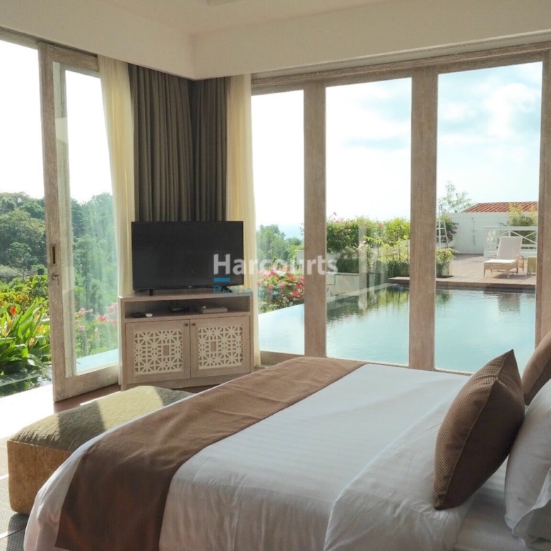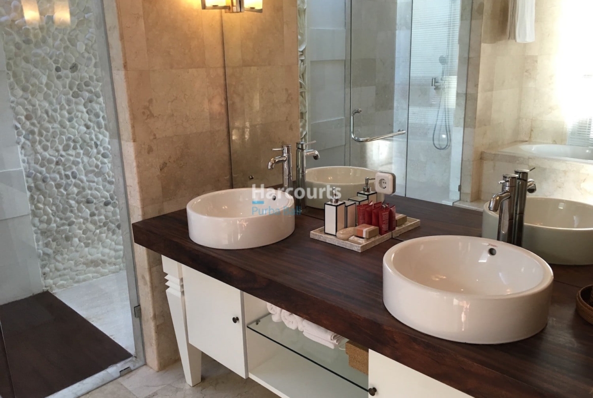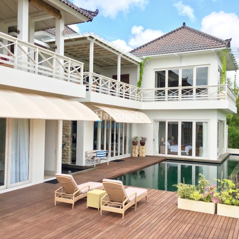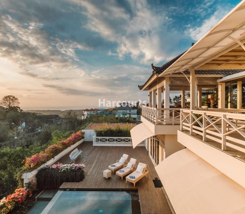 This stylishly designed FREEHOLD property located in a peaceful street in Balangan faces west and boasts ocean views. This piece of prime property has a good 6 metre access road and is surrounded by other luxury villas. its close proximity to Dreamland, home to an internationally recognized 18-hole golf course, several branded resorts and soon to be completed, waterbomb park and leisure complex, all overlooking pristine white sandy beaches, makes this the perfect location for a property investment.Set on 740 sqm of land and occupying a massive building size of 900 sqm over two levels, the well-maintained villa features 4 spacious bedrooms and 4 luxurious bathrooms. Built in 2014, the villa offers a contemporary style of living with its classic and sophisticated design that meets rustic yet casual beach vibes.The villa’s open-plan living/dining area filled with natural light and excellent air circulation can easily be closed off with folding doors. The property also consists of a large modern kitchen, basement staff quarters and a two car garage. The long 10m x 4m pool faces the ocean and is the perfect place for friends to gather for sunset cocktails. Built to the highest standards, the villa also boasts wide terraces to relax and take in the views.Partially furnished, the property is close to Sidewalk Jimbaran, the trendy new shopping hub where you can find shops, restaurants and a high-end supermarket. The white sands of Jimbaran Bay and the Cultural Park at Garuda Wisnu Kencana (GWK) are a short drive away. This modern property is ideally suited as a family residence or simply a great investment decision in an area which will definitely see continued growth.