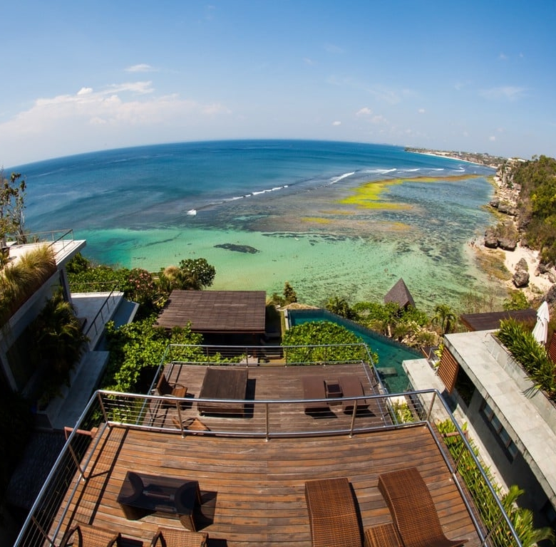 The highly desirable location at Padang-padang on the Bukit Peninsula is 11km from the New Kuta golf course and 20km from the airport.