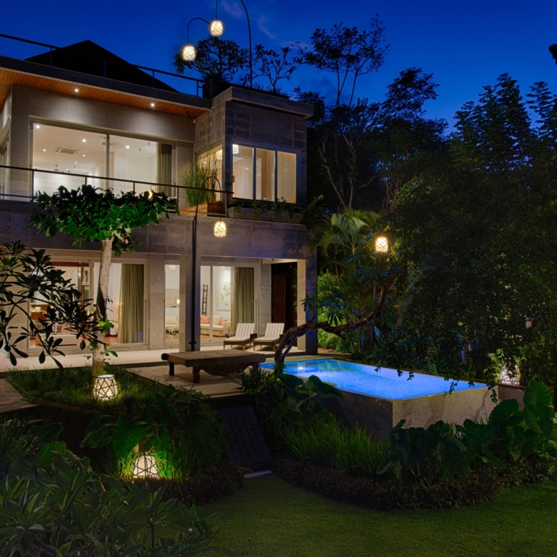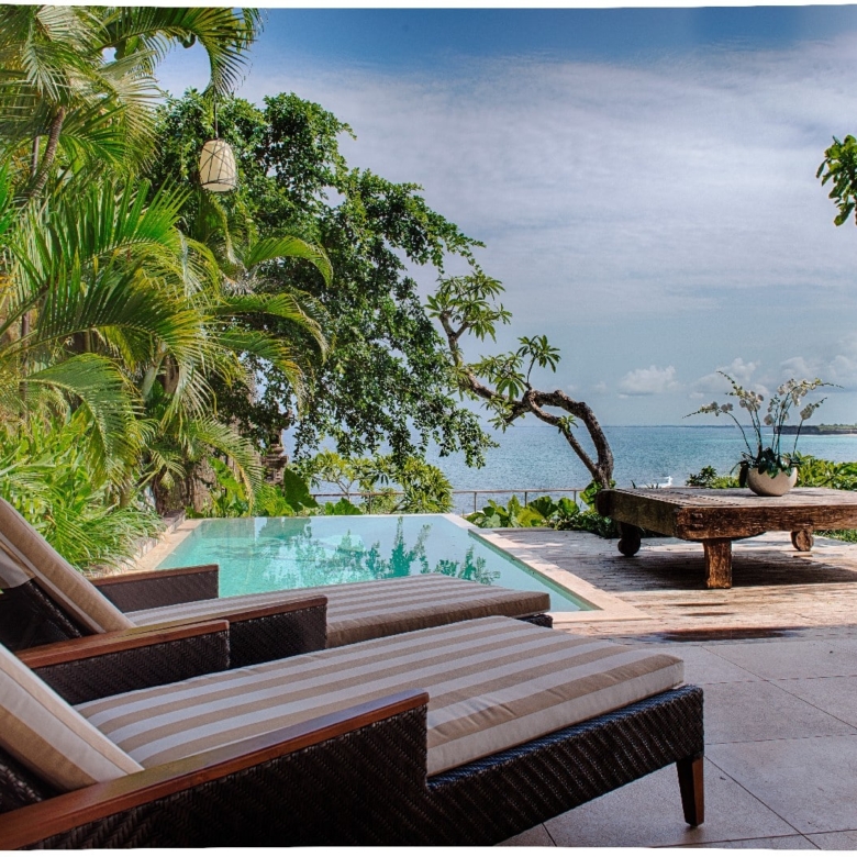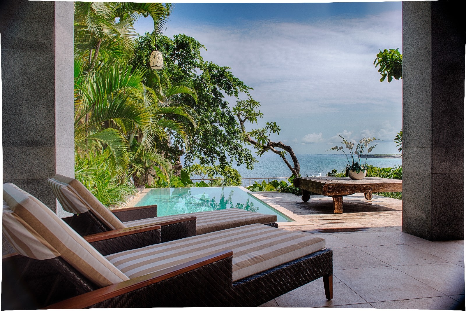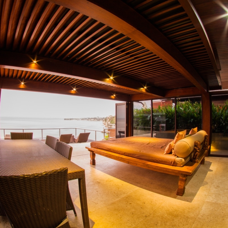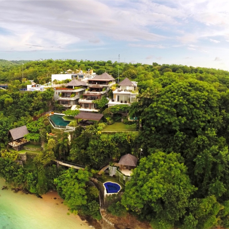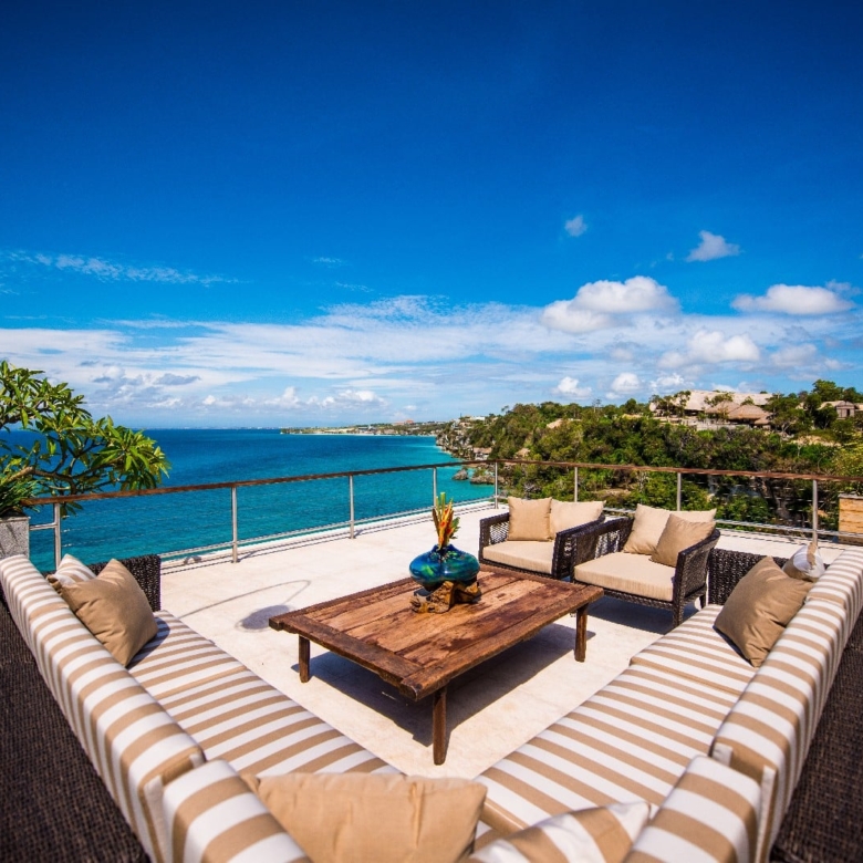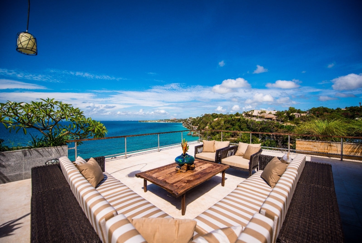 Beautiful, FREEHOLD, fully-furnished 7-bedroom residence covering more than 1850sqm of luxury living space on 3 floors, offering separate penthouse living or can be used as a more traditional flowing villa, complete with 26m pool and a 180-degree ocean vista.5 spacious bedroom suites include in-room seating/lounging areas, fully-equipped kitchens, dining areas, large ensuite bathrooms, and private balconies with sweeping ocean or garden views.A child’s bedroom adjoins one of the master bedrooms and a study sits upon every level.There is also a 1-bedroom cliff-side honeymoon villa with plunge pool.The residence is situated within a luxury 3-villa complex with 24-hour security. Just a short stroll from an idyllic, white-sand beach suitable for swimming and snorkelling, while the best waves are just a paddle away.The highly desirable location at Padang-padang on the Bukit Peninsula is 11km from the New Kuta golf course and 20km from the airport.Land size: 1,840 sqms Floor space: 1,874 sqms- Home entertainment : DVD, TV in Lounge area- internet connection : Wireless- Shared facilities : Garden, Parking, Pool, Security- Laundry : Laundry room, Washing machine- Office or study : An office/study area is also located on every level, with it’s own commanding views of the ocean- Distance to airport : 19.1 km approximate 30 minutes drive to Bali’s international airport- Distance to beach : Gradually terraced stairs lead from the upper portion down to the lower portion of the property – which is actually at water level – providing private access for swimming and surfing.