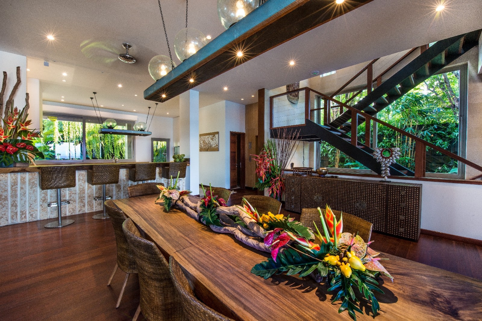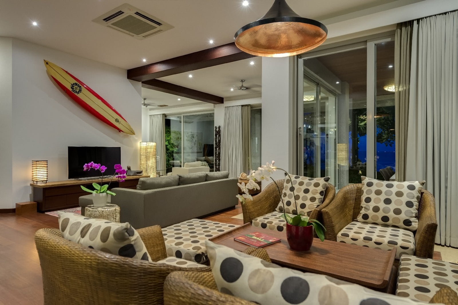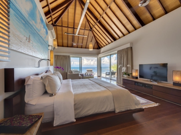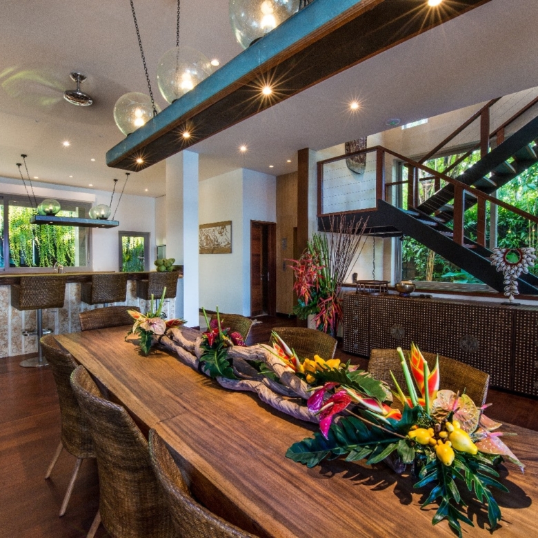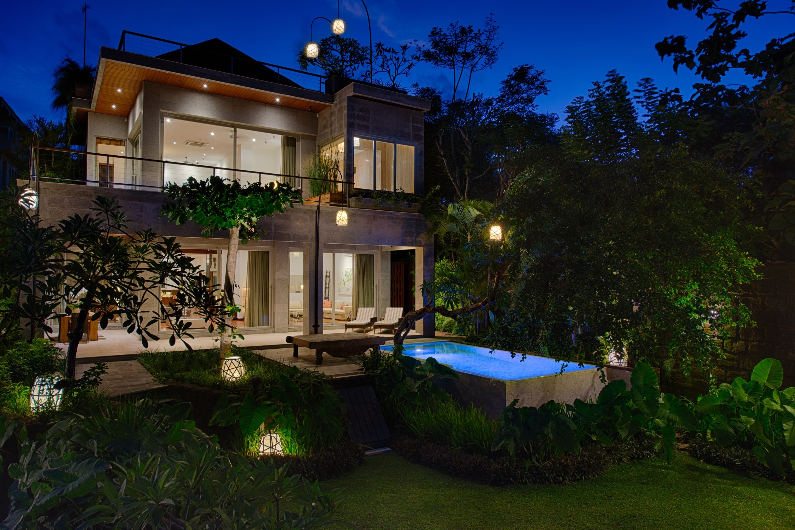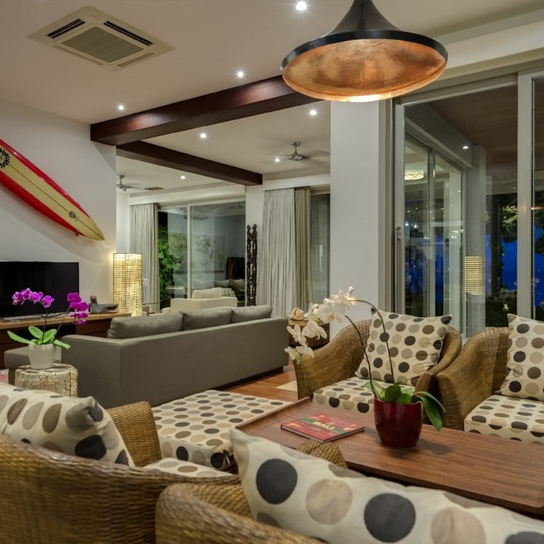 Beautiful, FREEHOLD, fully-furnished 7-bedroom residence covering more than 1850sqm of luxury living space on 3 floors, offering separate penthouse living or can be used as a more traditional flowing villa, complete with 26m pool and a 180-degree ocean vista.5 spacious bedroom suites include in-room seating/lounging areas, fully-equipped kitchens, dining areas, large ensuite bathrooms, and private balconies with sweeping ocean or garden views.A child’s bedroom adjoins one of the master bedrooms and a study sits upon every level.There is also a 1-bedroom cliff-side honeymoon villa with plunge pool.The residence is situated within a luxury 3-villa complex with 24-hour security. Just a short stroll from an idyllic, white-sand beach suitable for swimming and snorkelling, while the best waves are just a paddle away.The highly desirable location at Padang-padang on the Bukit Peninsula is 11km from the New Kuta golf course and 20km from the airport.Land size: 1,840 sqms Floor space: 1,874 sqms- Home entertainment : DVD, TV in Lounge area- internet connection : Wireless- Shared facilities : Garden, Parking, Pool, Security- Laundry : Laundry room, Washing machine- Office or study : An office/study area is also located on every level, with it’s own commanding views of the ocean- Distance to airport : 19.1 km approximate 30 minutes drive to Bali’s international airport- Distance to beach : Gradually terraced stairs lead from the upper portion down to the lower portion of the property – which is actually at water level – providing private access for swimming and surfing.