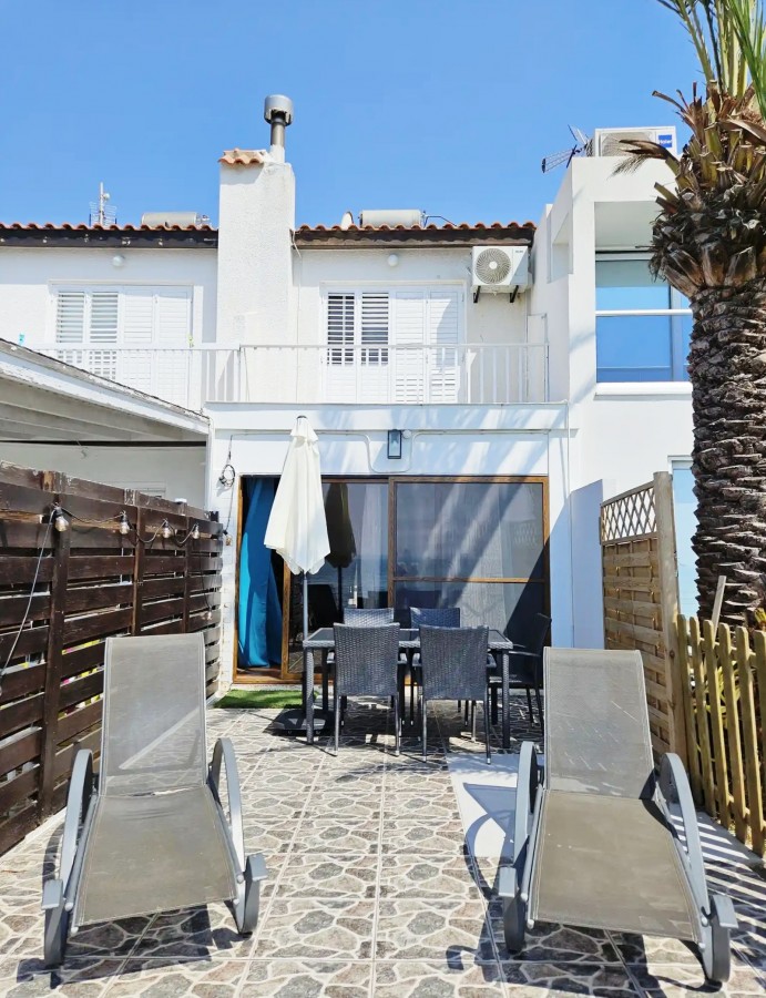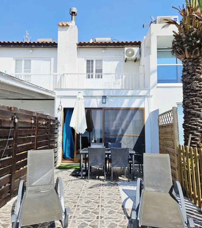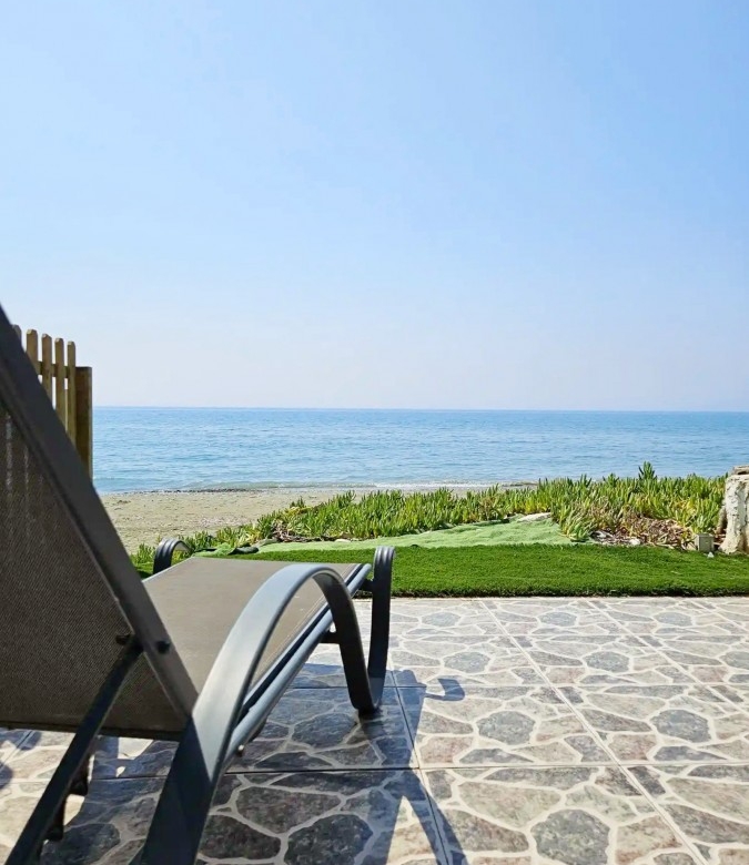 Discover the magic of coastal living with this exquisite beachfront maisonette in Meneou, where your garden meets the shimmering shoreline just steps from your door. Spanning two elegant levels, this home boasts two serene bedrooms with a balcony over looking the waters of the Mediterranean sea, a family bathroom, and an additional WC. The open-plan living and dining areas flow seamlessly into a modern, airy kitchen, each detail crafted with elegance to harmonize with the soothing sounds of the sea. Designed with exceptional quality, this is more than just a home—it’s a seaside sanctuary offering a rare blend of tranquility and sophistication.