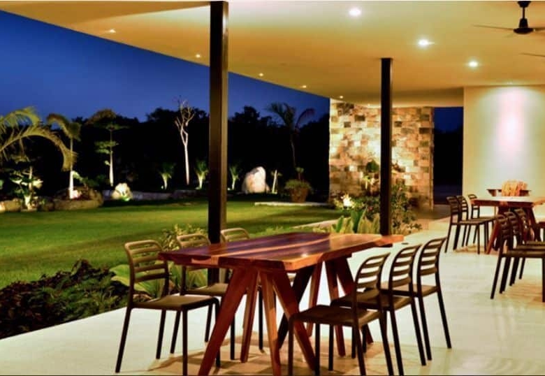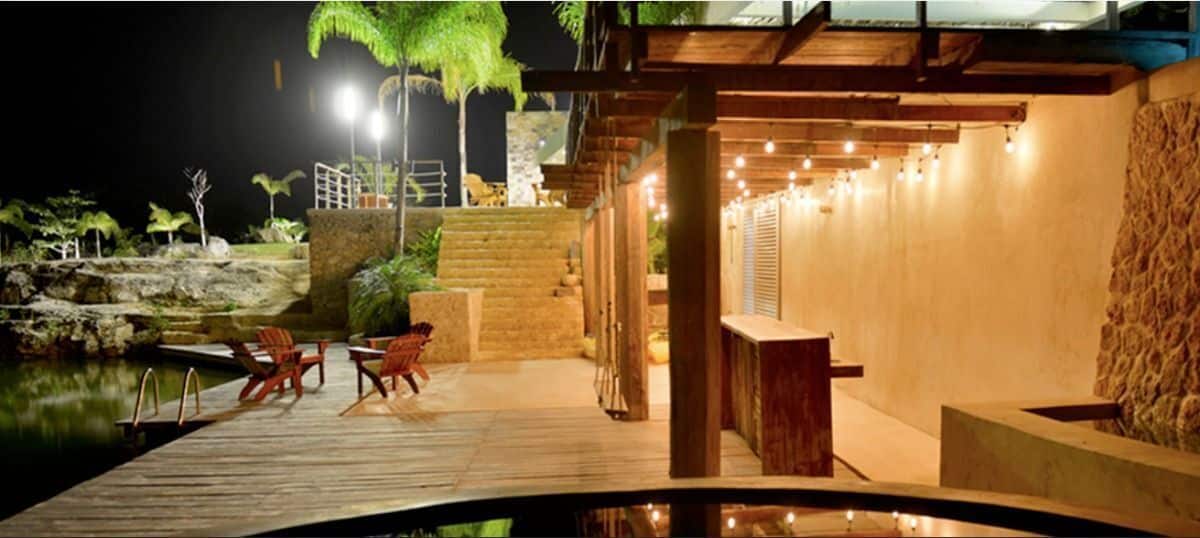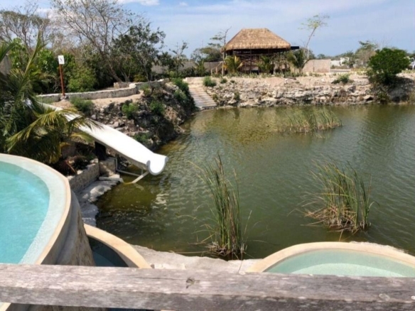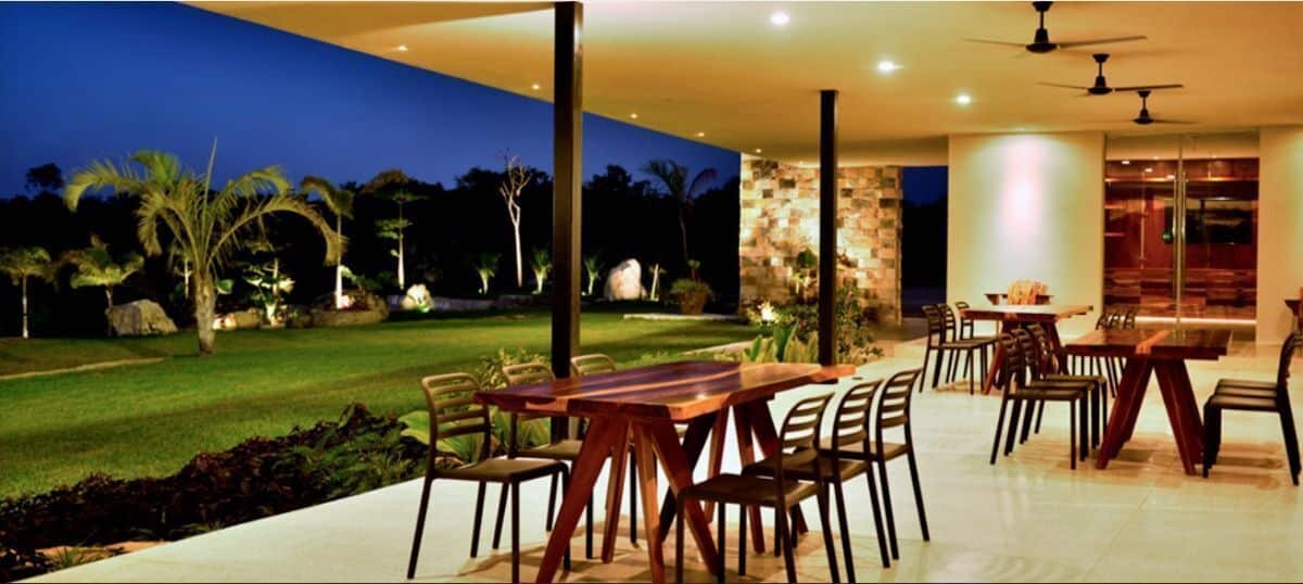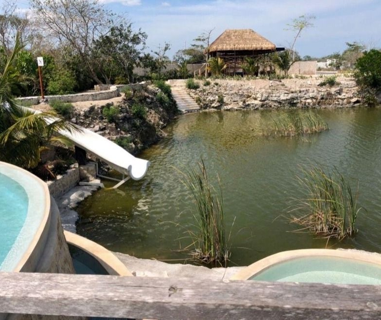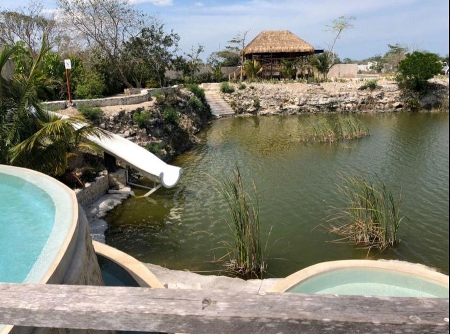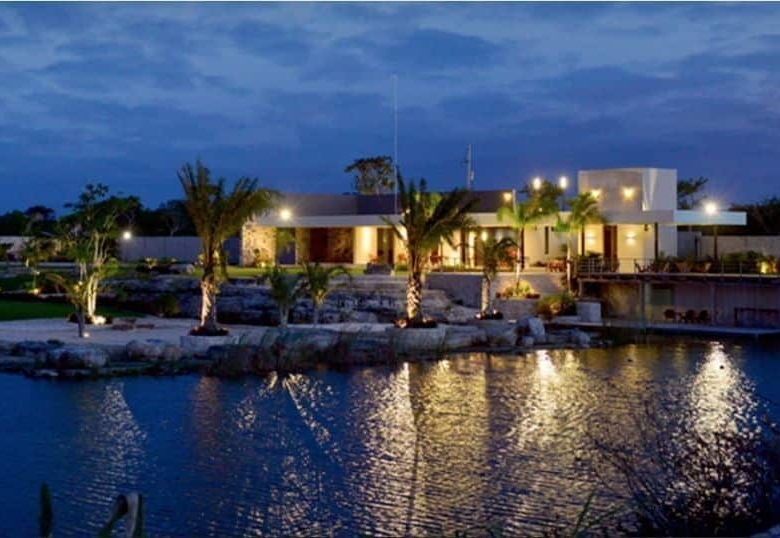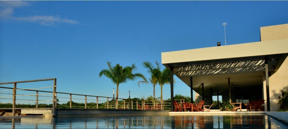 This impressive country residence of a plant radiates the charm of a contemporary hacienda, with elegant natural stone finishes that adorn its various facade walls.With a wide and functional distribution, the house is divided into two blocks, separated by a roofed lobby that opens outward, granting that distinctive touch of an authentic hacienda.The highlight of this property are its privileged views from each corner, thanks to the large windows that allow to contemplate the lush garden with trees, palms and local plants, as well as the spacious terrace and the generous pool.The first block is a spectacular double height space, where the huge open concept kitchen and the dining room are located. The second block houses a large room with large windows that open to the south interior garden and the main terrace to the north, guaranteeing excellent ventilation and freshness. Comfort and functionality are manifested in every detail of this property. Outstanding equipment:Tzalam wood kitchen with mabe stove and filtration bellMosquito nets in all windowsRoller curtains in all windowsClosets dressed in tzalam wood6 fans brand Craftmade Limerick model with remote control5 AiRES Conditioned Carrier (3 of 18000 Btus and 2 of 24000 Btus)Mirrors with lighting in all bathroomsWater softening and purification systemAutomatic irrigation systemCancel Cancel in BanosWould cancel aluminum in service room180 lts LP gas stationary tank.Passage water heaterThe residential development Dzidzil Ha offers an environment of wide exteriors, including a huge lake and a perfect club for meetings or barbecue, a bar in the area of the lake, an outdoor gym, a mega park with green areas, fast soccer field with cafeteria, a swimming channel on the lake, zip line, wide parking and more. Among the amenities offered by the residential Dzidzil do are:Club houseLarge green areasCyclopistAndersBar next to the poolinfinite swimming poolJacuzziChildren’s Games AreaMultipurpose courtCafeteriaKayak lake channelZipClimbing wallDirce Gonzalez.