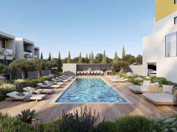 This exclusive development features 24 modern apartments and 5 elegant townhouses, designed to elevate your lifestyle to new heights. Located in a prime spot in Cyprus, just steps from Aspire Private British School, a 5-minute drive from the city centre, and within walking distance of the beautiful Venus Beach. Some apartments offer stunning sea views, others boast amazing mountain views, all with spacious layouts designed for comfort and style; residents enjoy a communal pool, secure parking, and the convenience of being close to both the beach and city center—perfect for those seeking a blend of relaxation and urban living.Delivery-September 2027