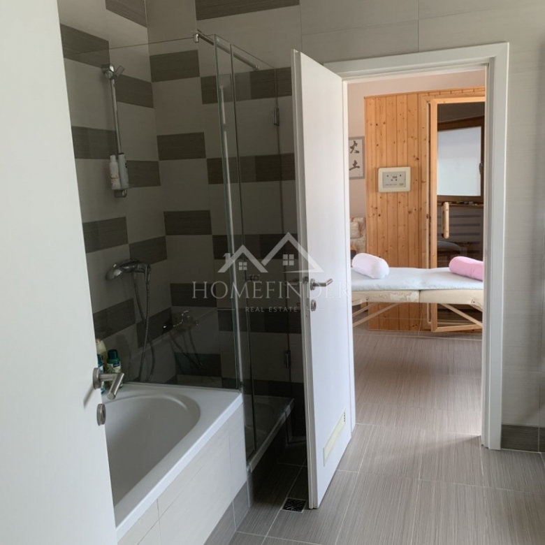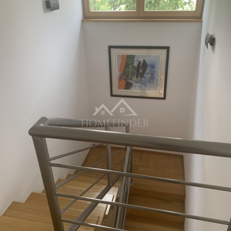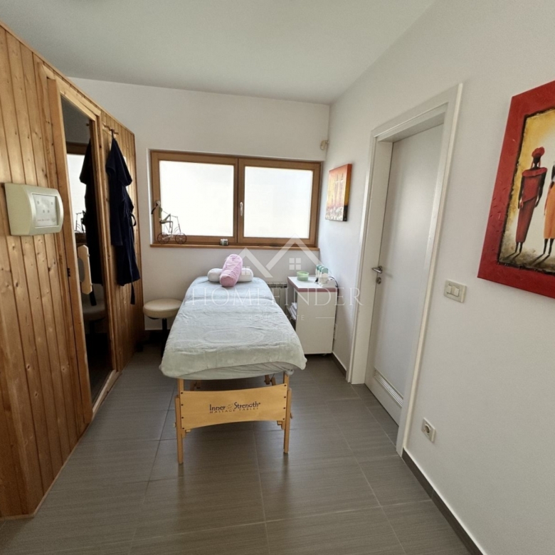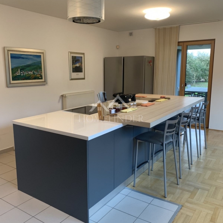 – Prostrani dnevni boravak (50 m²) s blagovaonicom i kuhinjom, povezan s vanjskom terasom putem velikih staklenih stijena