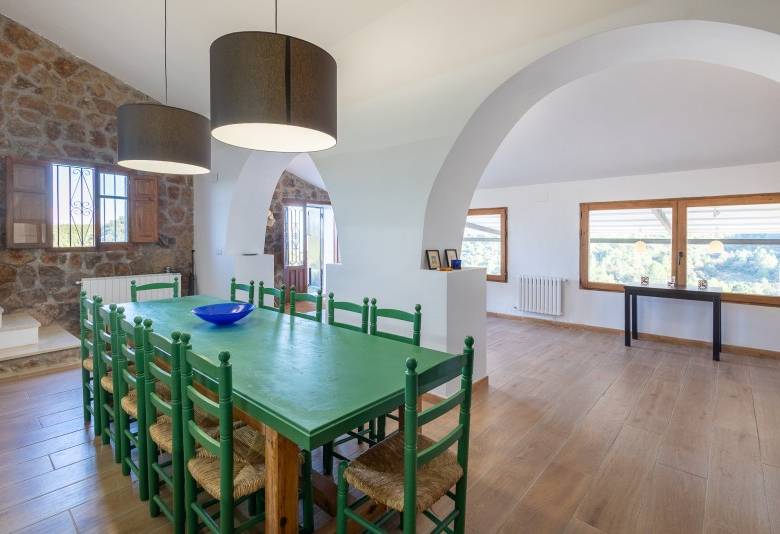 MASIA of 490 m2 built, completely renovated, distributed in an entrance hall, seven en-suite double bedrooms, kitchen with dining room for twelve people, reading room, large living room with fireplace and panoramic views with access to a terrace with barbecue and meeting areas.