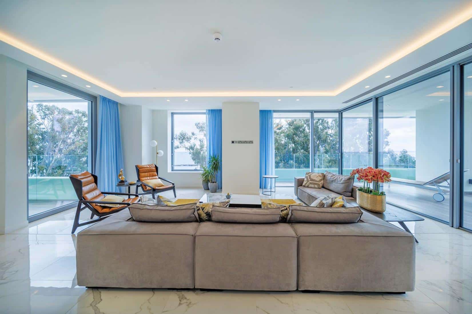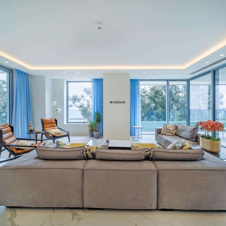 A luxury residential complex is located on the first coastline of Limassol, Cyprus’s important recreational and business location, Symbol offers its future residents designer apartments with views of the Mediterranean Sea and the picturesque coastline of one of the most dynamic resorts on the island. The Residence is comprised of 12 floors and 26 spacious apartment and Residents can enjoy numerous facilities including personal access to a private fitness center, as well as a SPA center, swimming pool, jacuzzi, a lounge zone, a large park and many more. This unique spacious apartment covers an entire floor, facing the coast and the green area, it combines a whisper of waves, fresh sea breeze, and the essence of the eucalyptus grove.