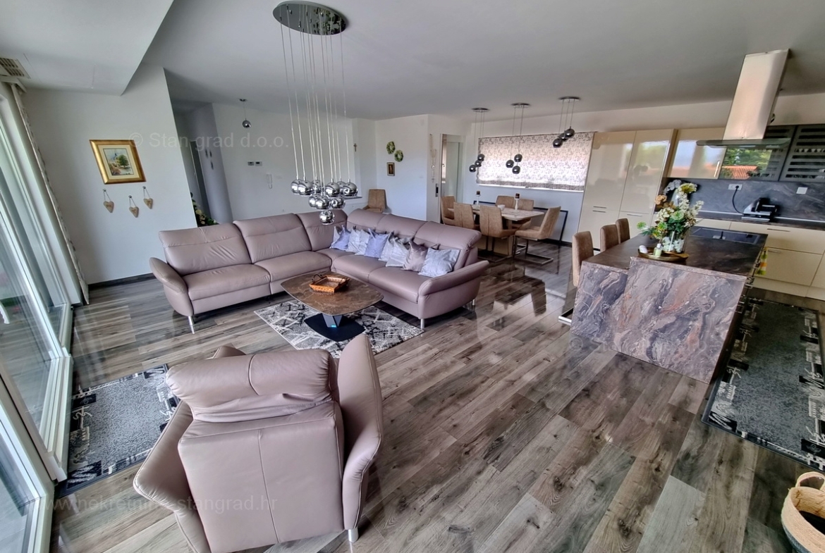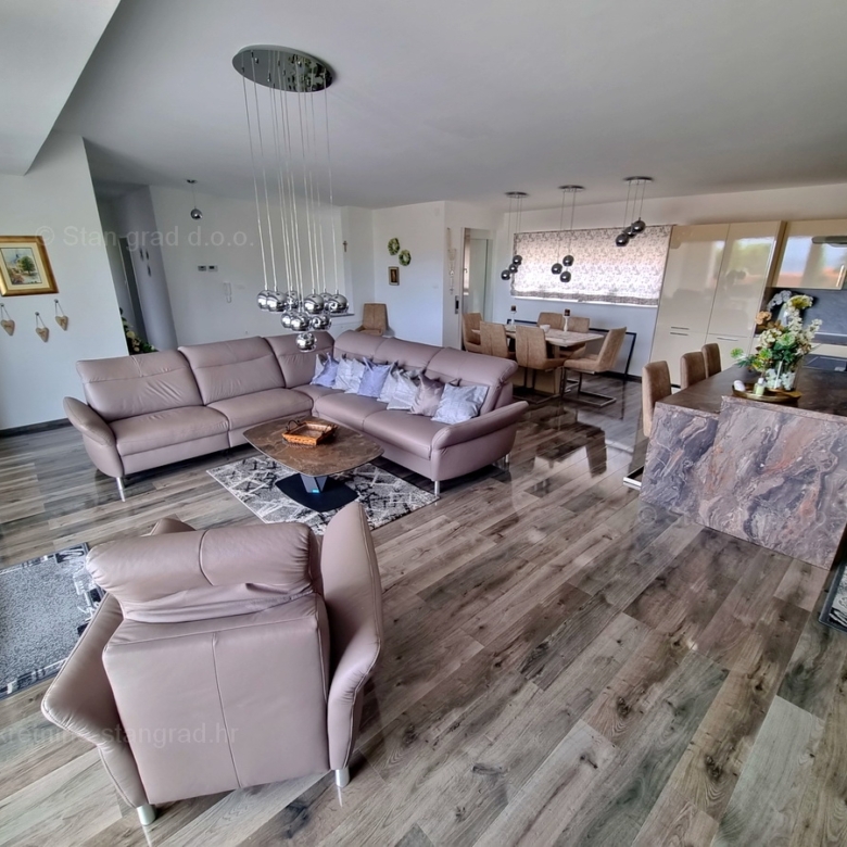 At Stan Grad Immobilien agency, an exceptional apartment built to a modern design is for sale in the attractive northern Adriatic area of the island of Krk. This apartment is located in an excellent and rarely available location, just a short walk from the sea and the center of the town of Malinska, as well as key amenities. Considering the type of property, this is a spacious single-level apartment.
